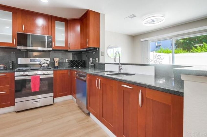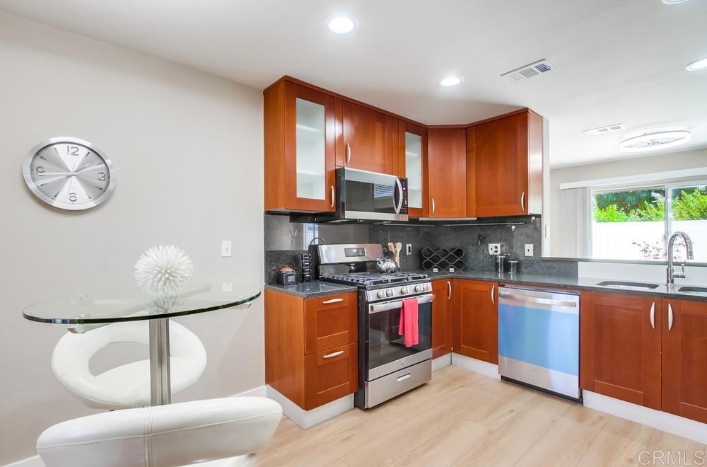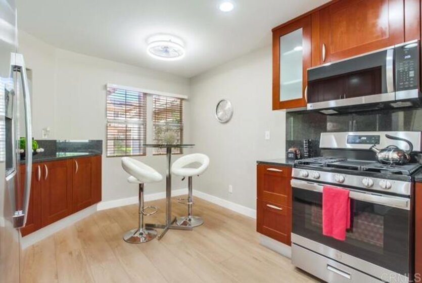 Wellcome to this beautiful remodeled largest floor plan of the gated community of Alacima. This townhome features an open concept design with cathedral ceilings in the family room and a skylight above the staircase. The kitchen has granite countertops and upgraded cabinets. Stainless steel appliances are almost new and complete the feel of the resort style living offered by the community. The primary bedroom is spacious , has vaulted ceiling, and the primary bathroom offers a quartz countertop and dual sinks for the owner's convenience. Extra storage space is is available as well. Plenty of cabinets are available on the upstairs hallway. The separate laundry room is conveniently located on the second floor. The patio offers privacy with no direct neighbor in the back. Flooring features new laminate throughout the first floor and hardwood and tiles on the second floor for and easy maintenance and modern look as well (no carpet in this home). Central A/C provides extra-comfort during summer, although the breeze is sufficient most of the time.