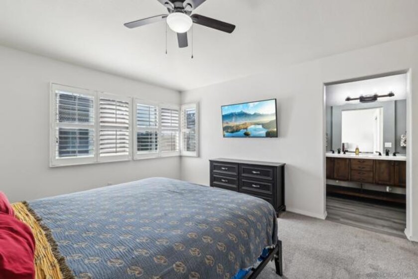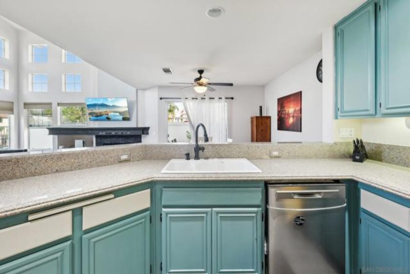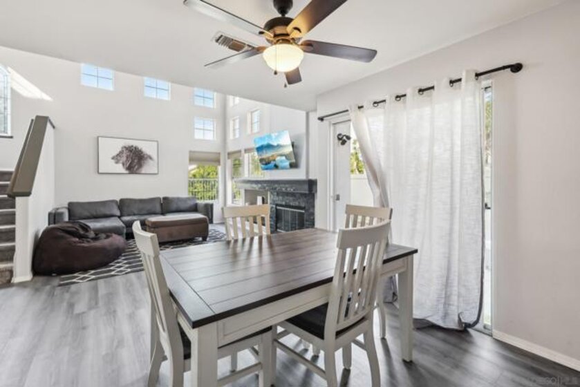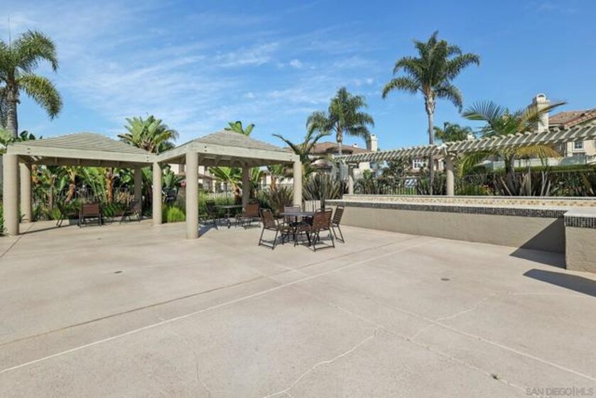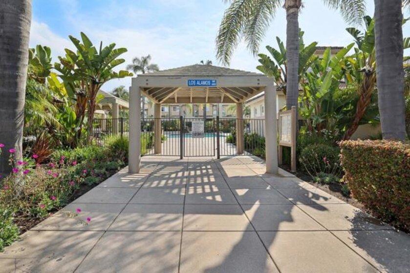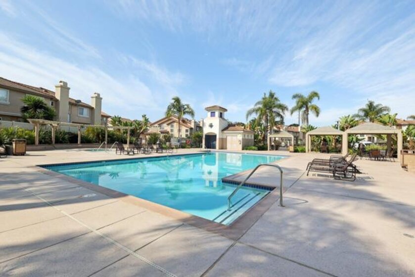 Nestled in a beautifully maintained gated community, this stylish 2-bedroom, 2.5-bathroom townhome offers the perfect blend of comfort, functionality, and charm. Spanning 1,236 square feet, the home features a light-filled open layout with tasteful updates and modern finishes throughout. Step inside to discover a spacious living area with a cozy fireplace, sleek flooring, and ample room for entertaining. The kitchen boasts stainless steel appliances, generous cabinet space, and a breakfast bar that flows seamlessly into the dining area. Upstairs, both bedrooms offer en-suite bathrooms and large closets, providing an ideal setup for privacy or guests. Enjoy the convenience of in-unit laundry, an attached garage, and your own private patio — perfect for morning coffee, outdoor dining, or a quiet escape. The community offers a resort-like atmosphere with amenities that include a pool, spa, and lush green spaces. Ideally located near shopping, dining, and a short drive to the beach, this home offers relaxed Southern California living with gated security and low-maintenance comfort.