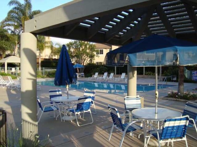 Great townhome in an impressive gated community of Alacima, in Rancho Del Oro. Stainless steel appliances in spacious kitchen with Wilsonart wood flooring. Lite n' Brite open floor plan with vaulted ceilings and built-in entertainment alcove above the fire place. Custom paint and upgraded light fixtures throughout. Laundry room with full size washer & dryer convey. Private tropical patio and attached two car garage. Community pool, spa, BBQ & open space. Close to Beaches, Sand & Surf.