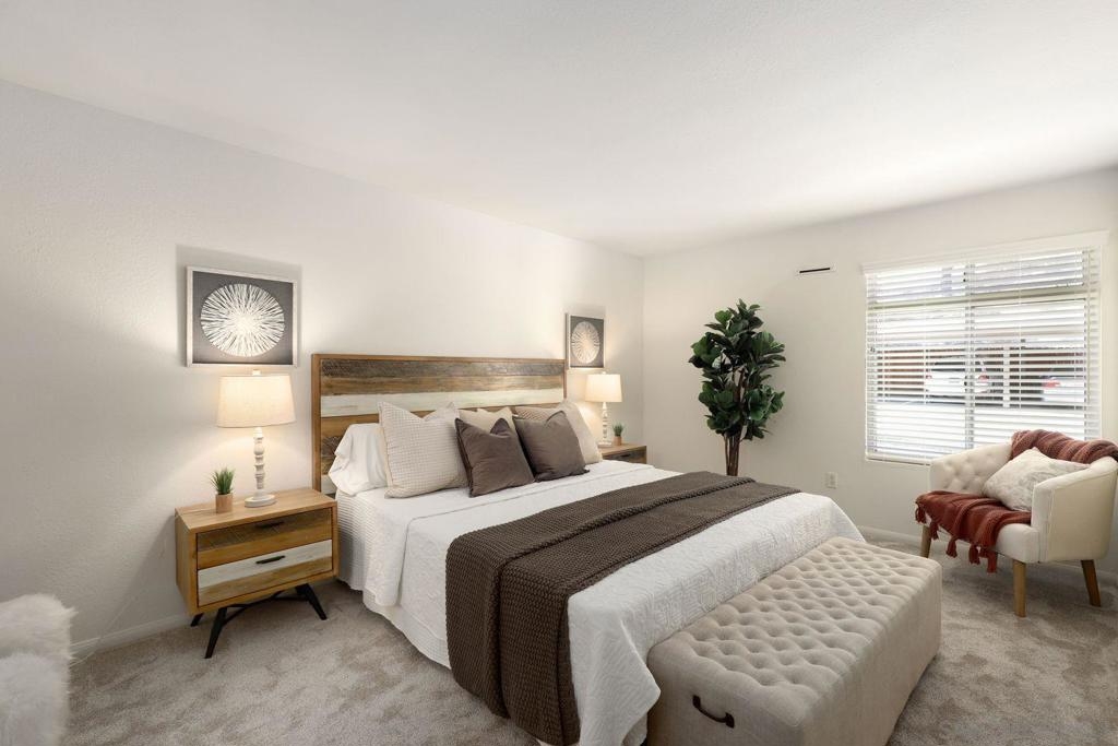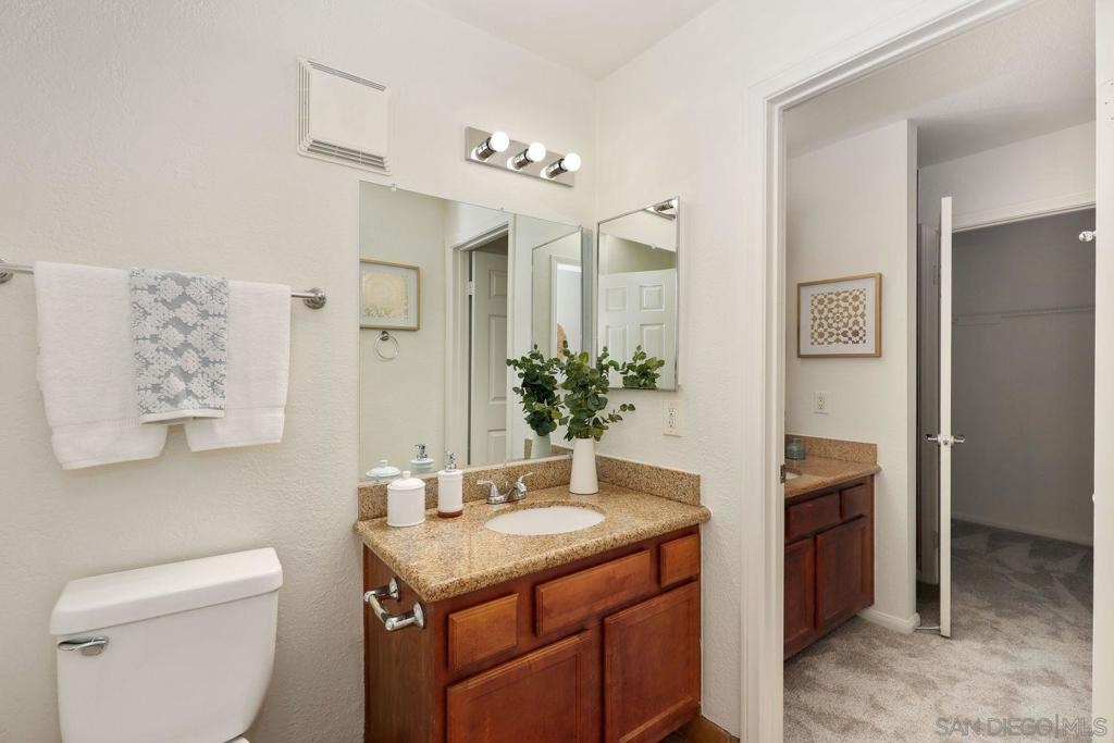 Welcome to "Arbor Hill" in Oceanside! This gated community surrounded by picturesque eucalyptus trees and features a community pool & spa + multiple green belt areas. This 2 bed/1.25 bath unit is located at the end of the complex not facing buildings or other units on the first floor (no stairs!) and includes an attached patio. Move-in ready ~The entire interior was just freshly painted! New carpet in both bedrooms, updated dining room light fixture/fan, and new blinds. Kitchen updated with refreshed cabinets, new sink, LED lights, new dishwasher and a new microwave. Primary bedroom includes a walk-in closet and in-room sink vanity (.25 bath) with direct access to the adjacent full hallway bathroom. Laundry facilities are located on-site. Covered carport parking #67 + storage closet on the patio. Located less than 3 miles from beaches! Convenient access to both I-5 and 78 Freeways and only 10 minutes to Camp Pendleton. Scoop this one up!