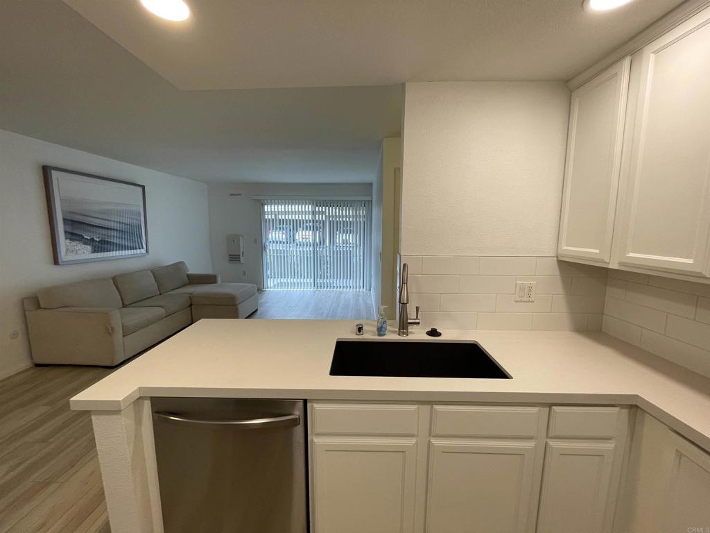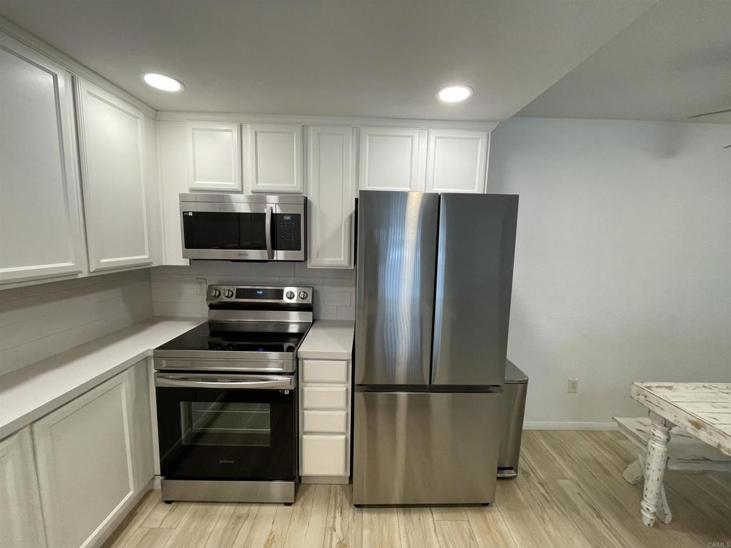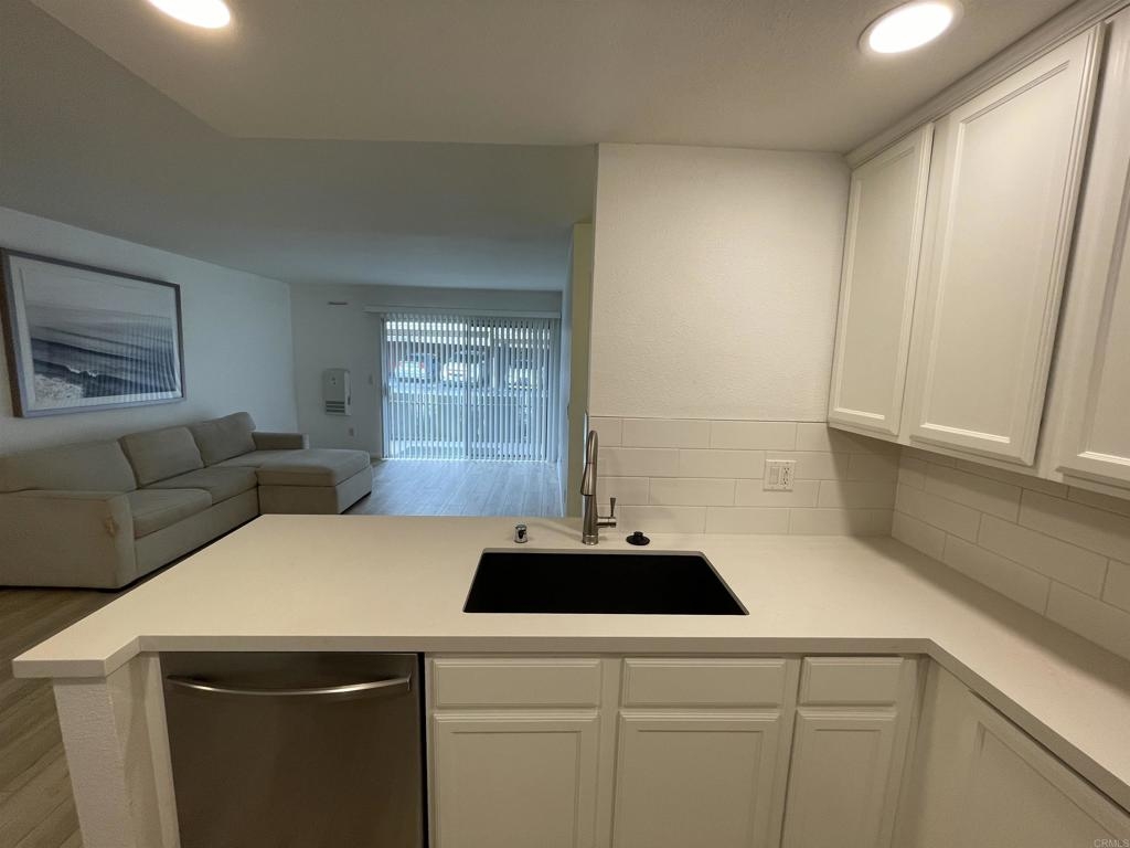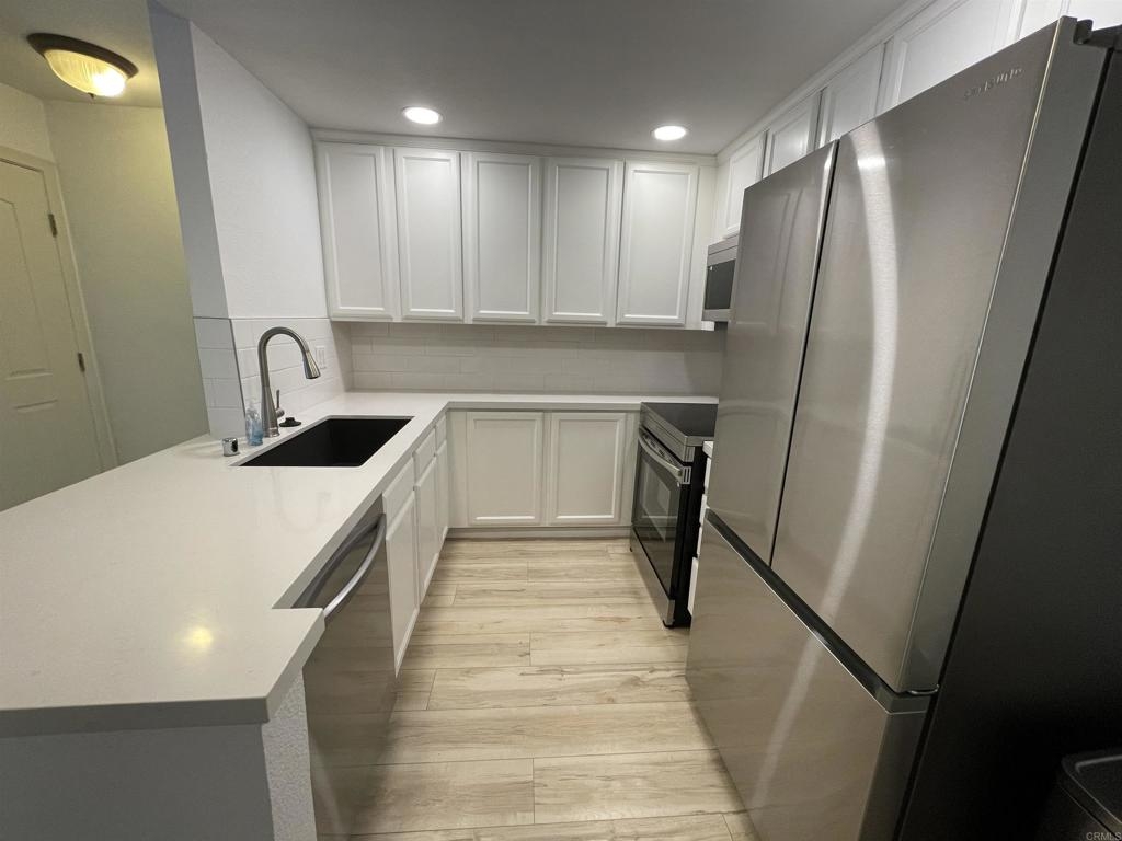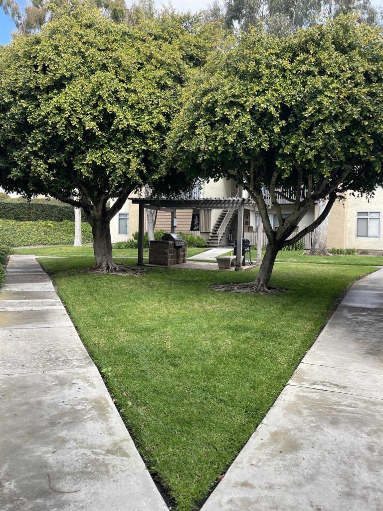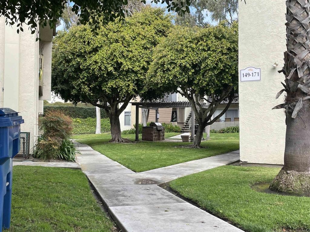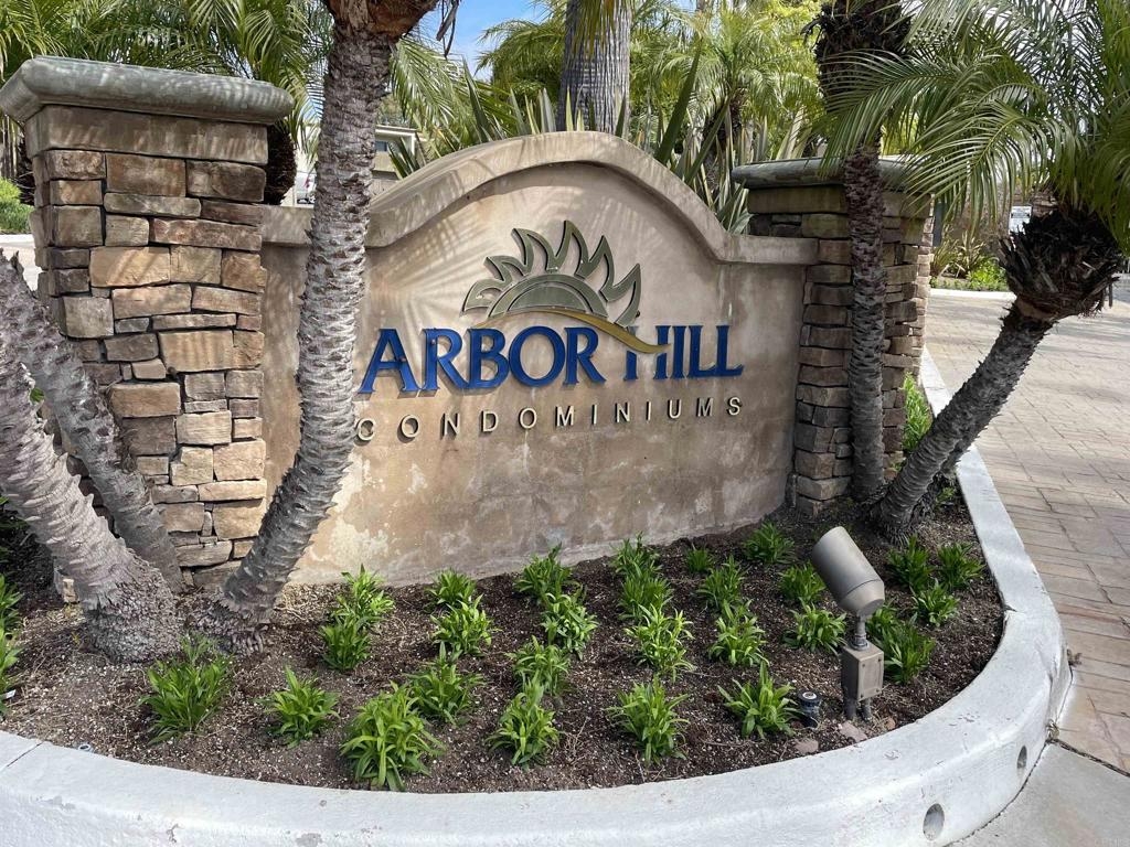 Welcome to "Arbor Hill Condominiums" in Oceanside! This gated community has park like surroundings with gorgeous eucalyptus trees. This is a 2 bed/1.25 bath unit located at the end of the complex and is not facing buildings or other units and is on the first floor (no stairs!) and includes an attached patio. Turn-Key ready. New light laminate flooring, beautiful quartz counter tops with tile backsplash, New Samsung appliances, large deep farm sink, and freshly painted! Fairly new carpet in both bedrooms. Kitchen updated with newer cabinets. Primary bedroom includes a walk-in closet and in-room sink vanity (.25 bath) with direct access to the attached full hallway bathroom. Laundry facilities are located on-site. Beautiful park like BBQ areas, Perfect entertaining club house with kitchen and separate rooms for meetings. one covered carport parking space + storage closet on the patio. Guest parking spots. This adorable condo is located just 2.5 miles from the beach, a 9-minute drive! Convenient access to both I-5 and 78. Sellers job is relocating them.