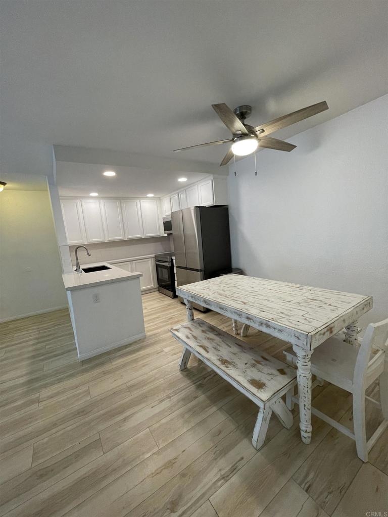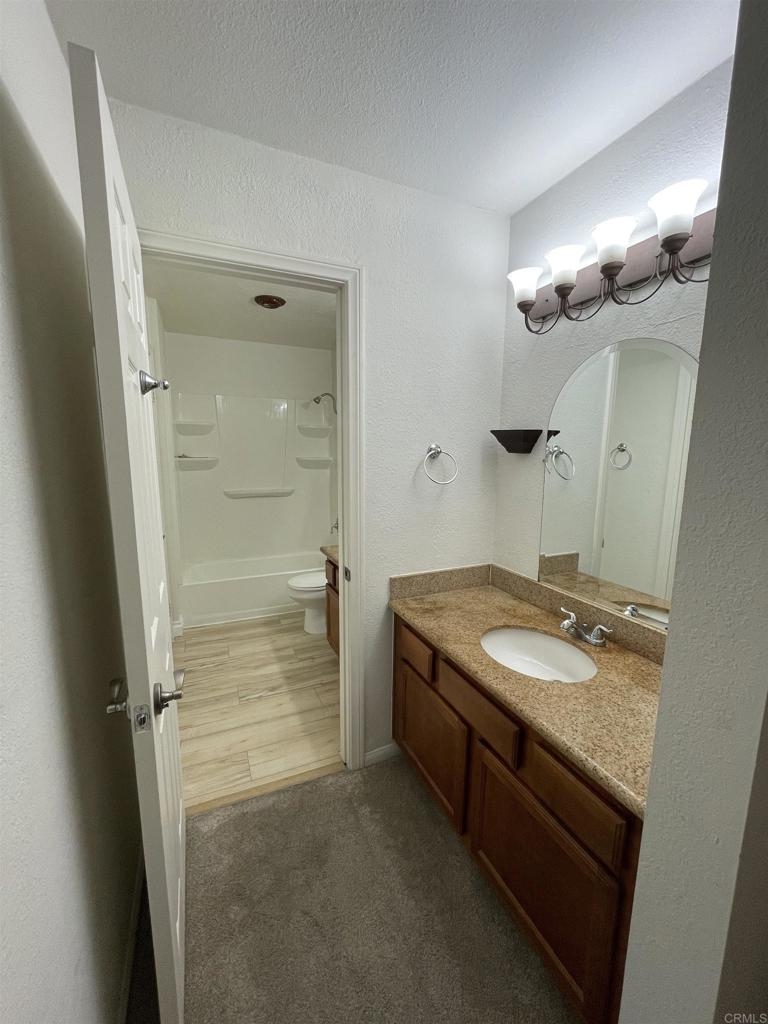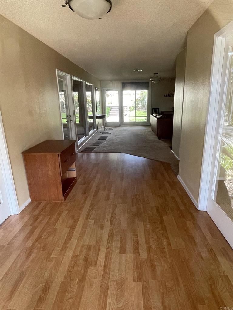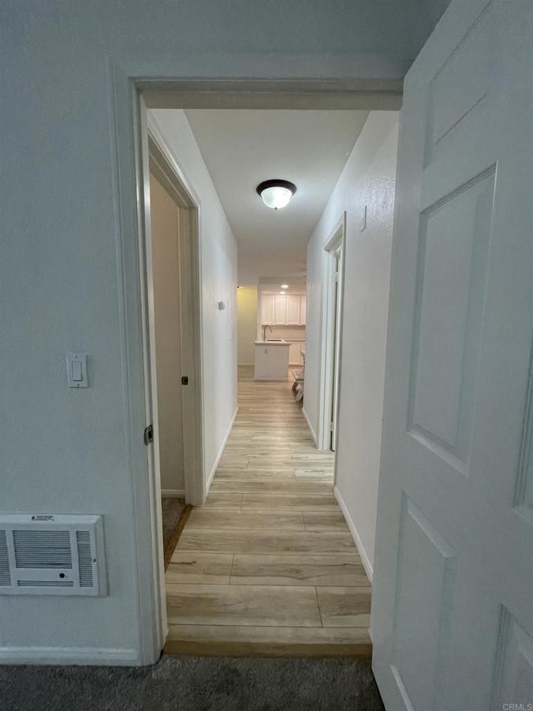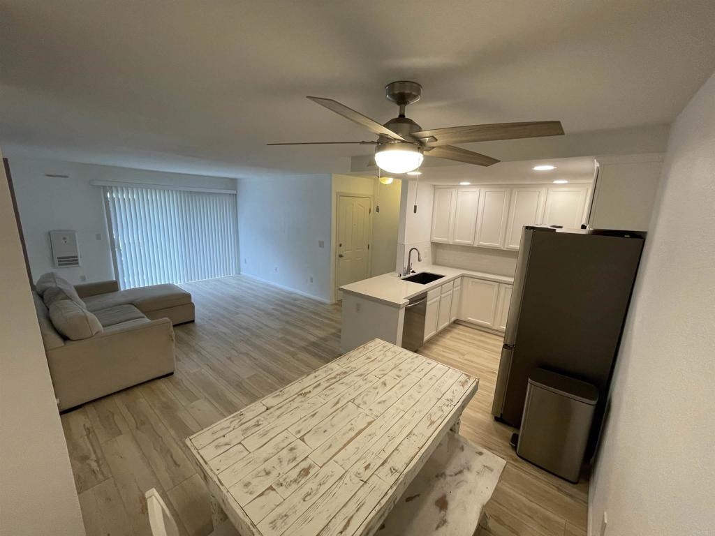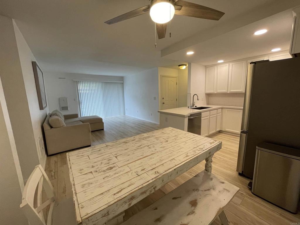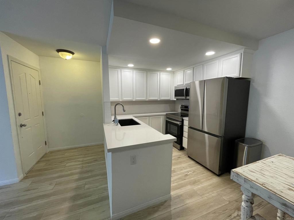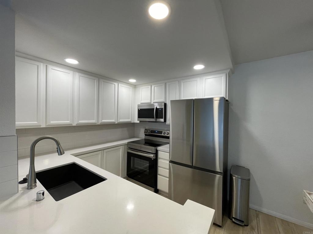 Welcome to "Arbor Hill Condominiums" in Oceanside! This gated community has park like surroundings with gorgeous eucalyptus trees. This is a 2 bed/1.25 bath unit located at the end of the complex and is not facing buildings or other units and is on the first floor (no stairs!) and includes an attached patio. Turn-Key ready. New light laminate flooring, beautiful quartz counter tops with tile backsplash, New Samsung appliances, large deep farm sink, and freshly painted! Fairly new carpet in both bedrooms. Kitchen updated with newer cabinets. Primary bedroom includes a walk-in closet and in-room sink vanity (.25 bath) with direct access to the attached full hallway bathroom. Laundry facilities are located on-site. Beautiful park like BBQ areas, Perfect entertaining club house with kitchen and separate rooms for meetings. one covered carport parking space + storage closet on the patio. Guest parking spots. This adorable condo is located just 2.5 miles from the beach, a 9-minute drive! Convenient access to both I-5 and 78. Sellers job is relocating them.