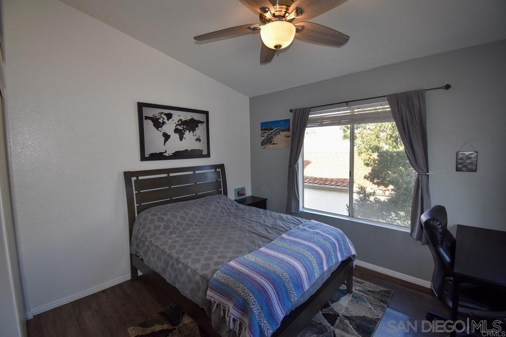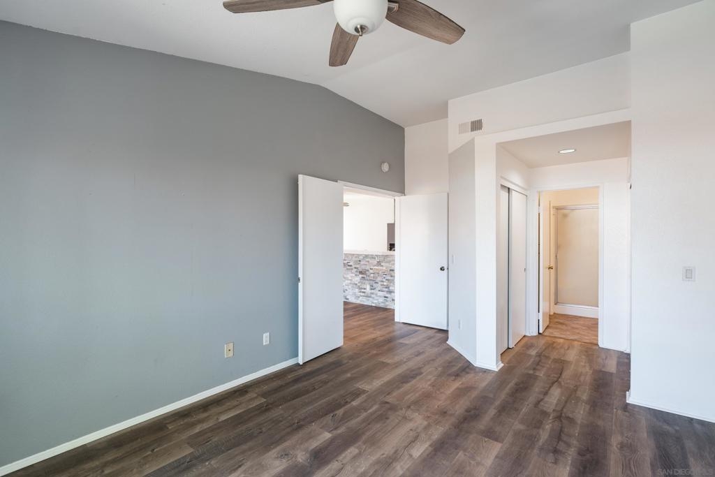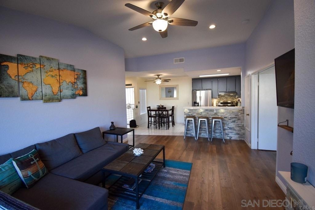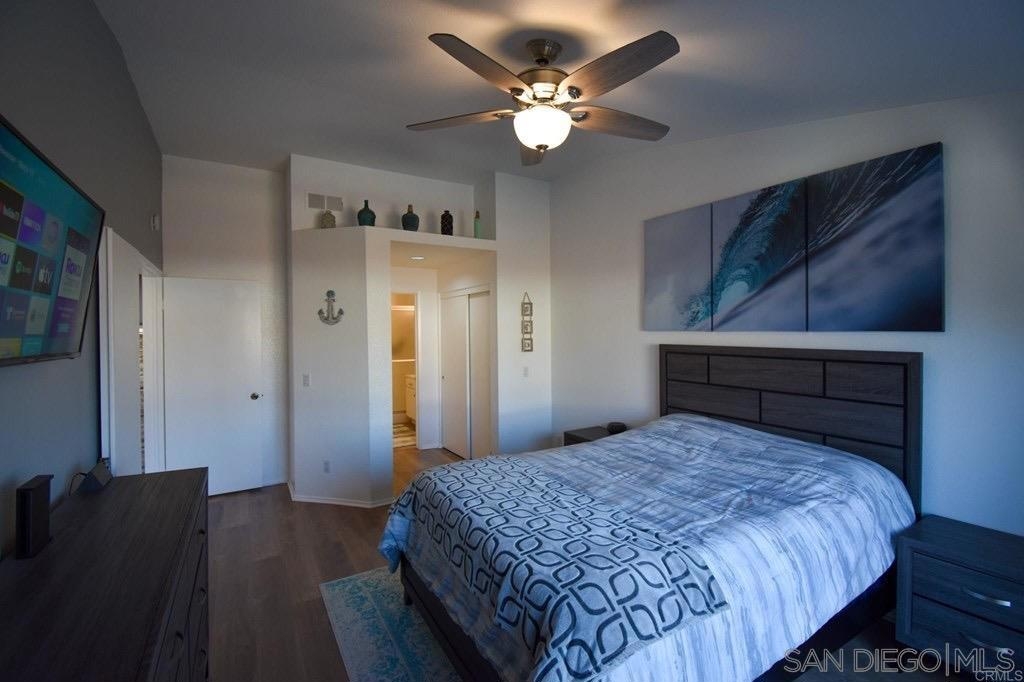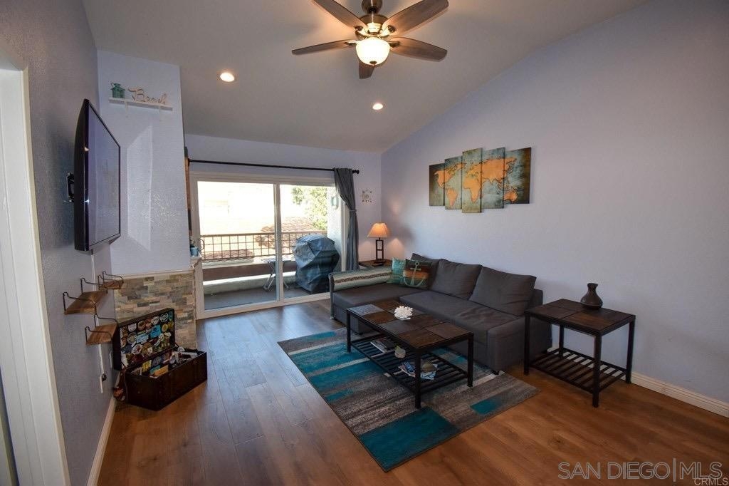 Own this beautiful & bright 2b/2bth 942 sq ft home with vaulted ceilings. 20k worth of upgrades including hardwood floors throughout, stainless steel appliances, custom stone back splash bar & fireplace, new water heater & dual pane windows, sliders & new garage door. Master en-suite features dual vanities & a private balcony. Full size washer & dryer in unit, 1 car garage, pool, jacuzzi, tennis courts & plenty of street parking. Less than 2 miles to the beach & minutes to Camp Pendleton. VA/FHA approved!