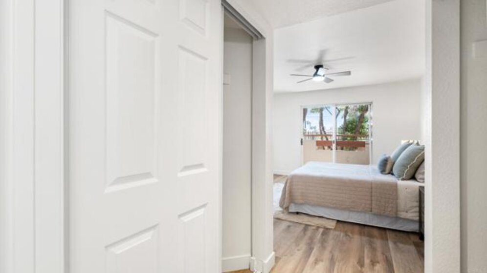 Move-in ready and beautifully maintained, this 2-bedroom, 2-bathroom Oceanside condo features a bright, open layout with fresh paint, wood flooring, and abundant natural light. The kitchen offers granite countertops, stainless steel appliances, and ample cabinet space, opening to the main living area. The spacious primary suite includes an en suite bathroom and large closet, while the secondary bedroom provides flexible use for guests or a home office. Enjoy two private balconies and resort-style community amenities including a pool, spa, and clubhouse. Conveniently located near shopping, dining, Camp Pendleton, and freeway access, offering comfort and coastal convenience.