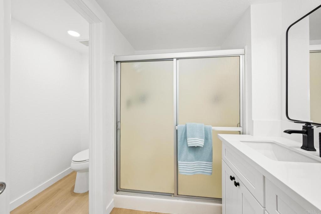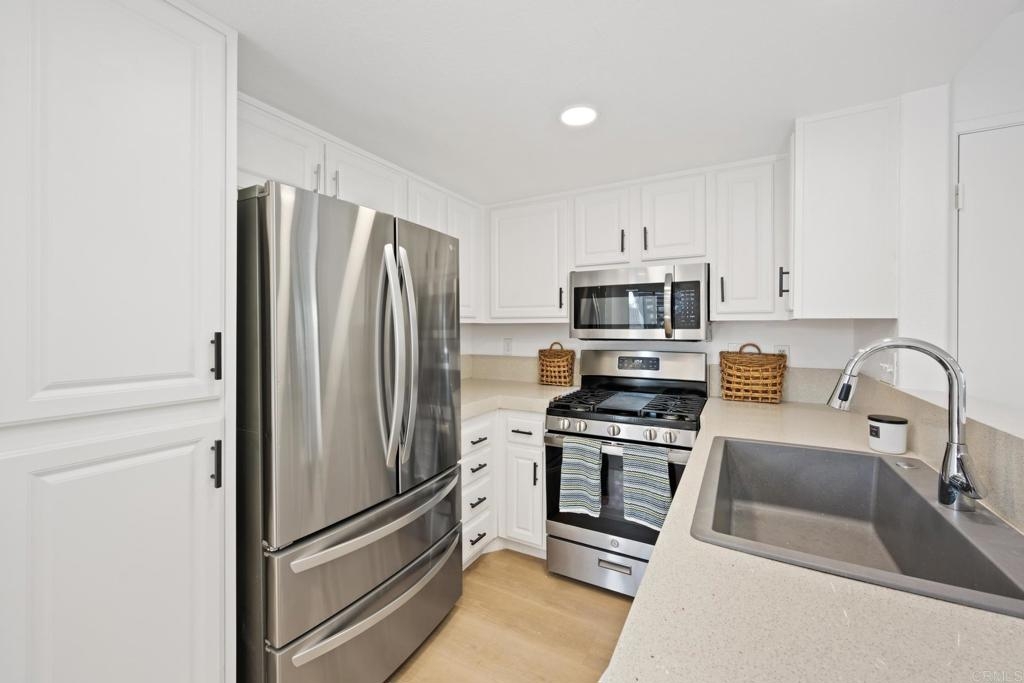 Welcome to resort-style living at Avalon at Eagles Crossing, one of Oceanside’s most sought-after communities! This beautifully upgraded lower-level 2-bedroom, 2-bathroom unit offers the perfect blend of modern convenience and coastal charm. Inside, you’ll find luxury vinyl plank flooring, recessed lighting, upgraded bathroom vanities, and a sleek kitchen with quartz countertops and stainless steel appliances. The desirable split-bedroom floor plan is filled with natural light and includes two covered patios, perfect for relaxing outdoors. This move-in-ready home comes complete with all appliances, including a washer and dryer, making it a seamless transition for its new owner. The community’s impressive amenities include a sparkling pool, relaxing spa, tennis courts, gym, sauna, and a clubhouse perfect for social gatherings. Families will love the tot lot and picnic areas with BBQ grills. Parking is a breeze with a detached single-car garage featuring extra-deep storage, an additional assigned parking space, and plenty of guest parking steps from your door. Conveniently located less than 2 miles from the beach, Oceanside Pier, and Harbor Village, this home is perfectly positioned for those who love outdoor activities, dining, and entertainment. With easy access to major freeways, commuting to Camp Pendleton, Carlsbad, and San Diego is a breeze. Nearby shopping centers, grocery stores, and schools complete the picture of convenience. Don’t miss your chance to experience the Southern California lifestyle at its best—schedule your private showing today!