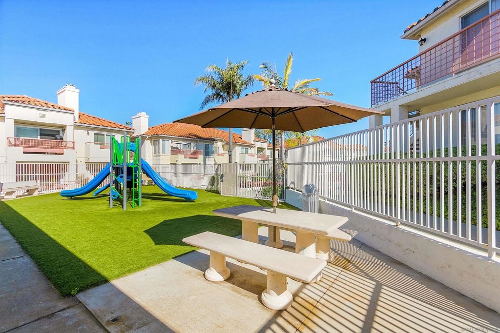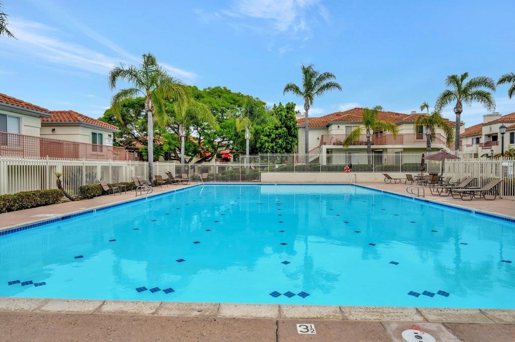 Experience resort-style living in this stunning top-floor private unit that boasts a prime location and complete remodel. Only 1 mile to the beach, this bright and airy home features a beautifully designed kitchen with stainless steel appliances, new stone countertops, tiled backsplash, and a convenient bar. Relax in the great room, complete with a gas fireplace, light wood flooring, dining area and sliding doors that open to a peaceful west facing balcony overlooking beautifully greenscaped courtyard. The primary bedroom is generously sized, features arched doorways into the remodeled bathroom, a large walk in closet with built in closet system and sliding doors that lead to another private balcony and an ensuite bathroom. Oversized garage provides storage space. Take advantage of the many community amenities, including a heated pool, hot tub spa, fitness room, tennis courts, playground, putting green, and clubhouse. Conveniently located just minutes from the beach, pier, and major freeways, this property is a true gem. Experience resort-style living in this stunning top-floor private unit that boasts a prime location and complete remodel. Only 1 mile to the beach, this bright and airy home features a beautifully designed kitchen with stainless steel appliances, new stone countertops, tiled backsplash, and a convenient bar. Relax in the great room, complete with a gas fireplace, light wood flooring, dining area and sliding doors that open to a peaceful west facing balcony overlooking beautifully greenscaped courtyard. The primary bedroom is generously sized, features arched doorways into the remodeled bathroom, a large walk in closet with built in closet system and sliding doors that lead to another private balcony and an ensuite bathroom with dual sinks. Oversized garage provides storage space. Take advantage of the many community amenities, including a heated pool, hot tub spa, fitness room, tennis courts, playground, putting green, and clubhouse. Conveniently located just minutes from the beach, pier, and major freeways, this property is a true gem.
