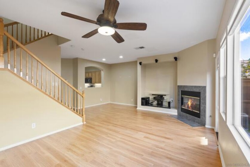 Just a short walk to the community pool and spa, and tucked into a quiet location within the complex directly across from the tot lot, this 3-bedroom, 2.5-bath townhome offers space, comfort, and opportunity. Hard surface flooring downstairs and brand new carpet throughout the entire 2nd floor. A one-car garage with direct access + 1 deeded parking space #143 adds everyday convenience, along with a thoughtfully placed laundry area on your way to the garage, making daily routines simple and efficient. (see suppl) The spacious kitchen features stainless steel appliances and a walk-in pantry for added storage. The open living and dining area is centered around a cozy fireplace, creating a warm and inviting space to gather. Sliding doors lead to your private, ground-level patio, providing easy indoor-outdoor flow for morning coffee, weekend BBQs, or relaxing at the end of the day. Upstairs, three bedrooms provide flexible space for family, guests, or a home office. The functional layout presents a solid foundation ready for your clients to customize and bring to life. Conveniently located near shopping, dining, and everyday services, this townhome combines practicality with value in a peaceful Oceanside setting.