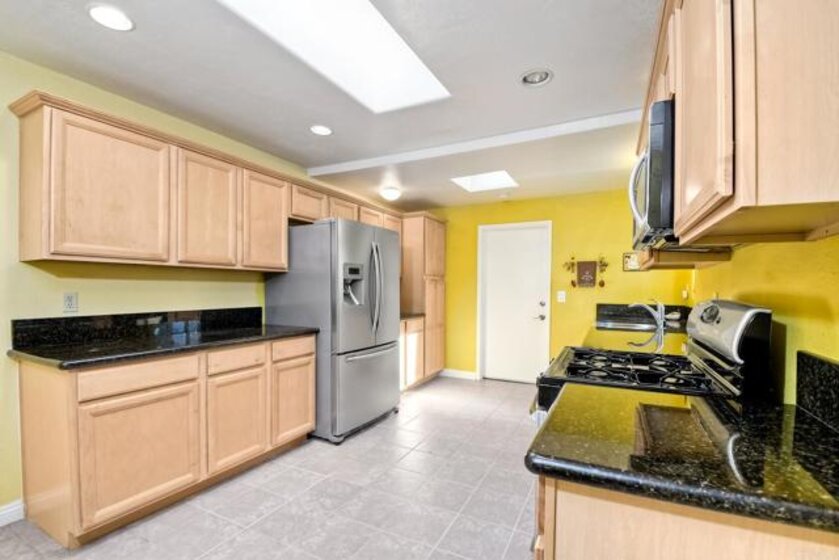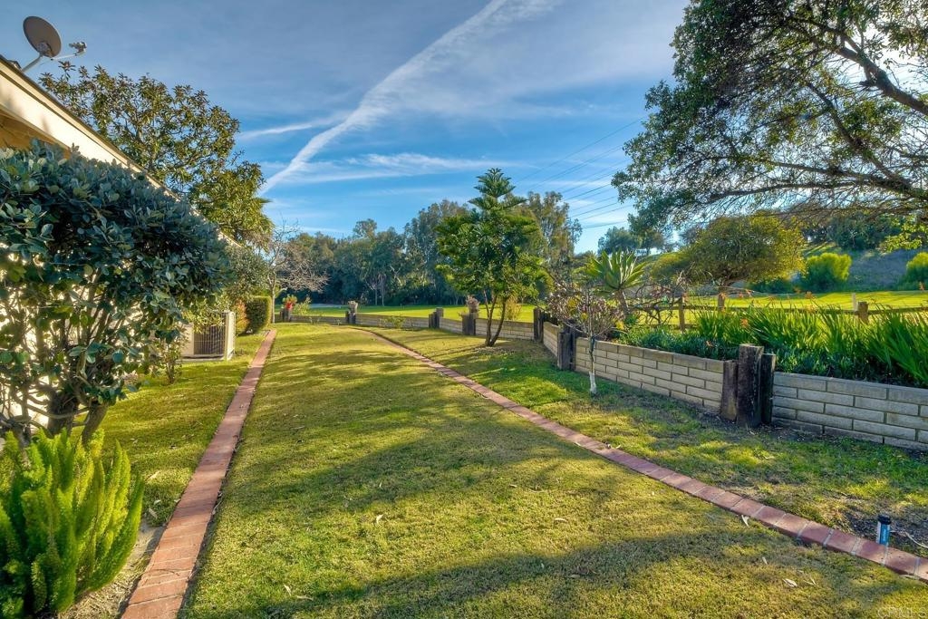 Single story attached golf course home with 3 bedrooms, 2 bathrooms and an estimated 1,500 square feet. Located at the end of a cul-de-sac, this home sits nestled between the 3rd and 4th holes at El Camino Country Club. Various improvements including exterior paint, interior and exterior gas lines, dual pained windows and sliders, carpet in two rooms, granite counters in kitchen and bathrooms, new microwave and more... 2 car attached garage, spacious outdoor living with room to garden or entertain. Fruit trees include, avocado, navel orange, peach, persimmon, apple and fig. Close to shopping, restaurants, freeways and more...