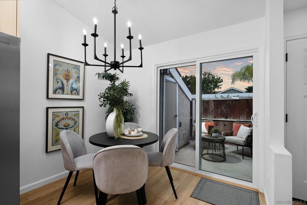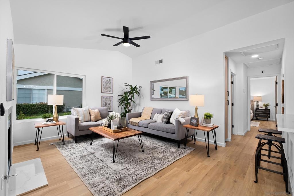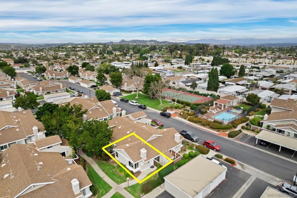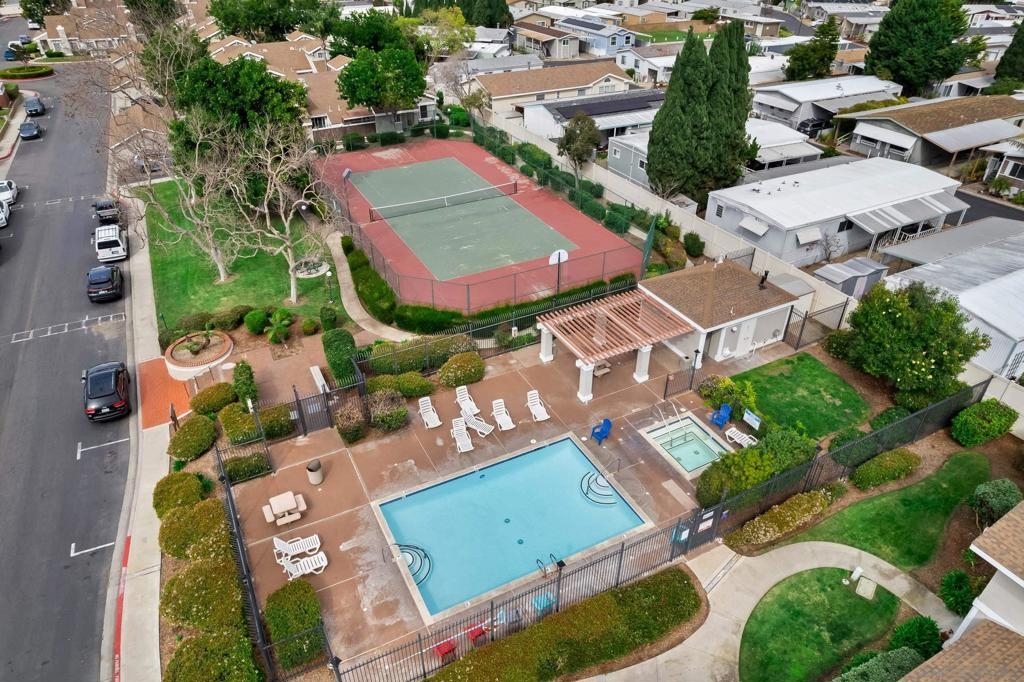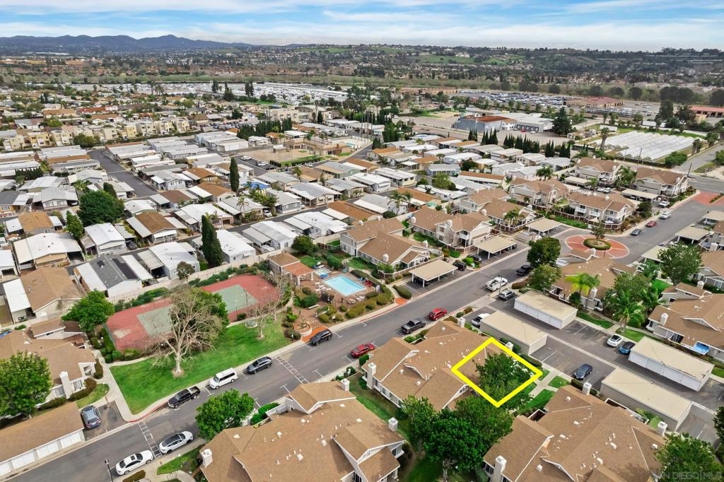 Corner unit 2 bedroom 2 bathroom that comes with a detached 1 car garage. An open-concept kitchen and living room with a centralized fireplace that adds an extra touch of coziness. The dining room connects to a private patio providing the option to utilize the indoor/outdoor space. A convenient extra storage space/shed on the patio. The primary bedroom features its own private patio. Some of the community amenities are just steps away where you can indulge in the pool, or have a friendly match or workout at the basketball/tennis court. When you are not at home you can enjoy the close proximity to golf courses, shopping centers, and San Luis Rey River trail that leads to Oceanside Harbor or to Guajome Lake.