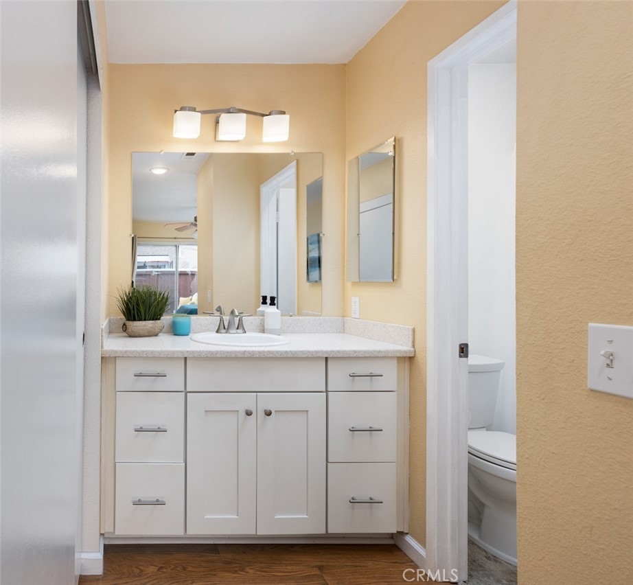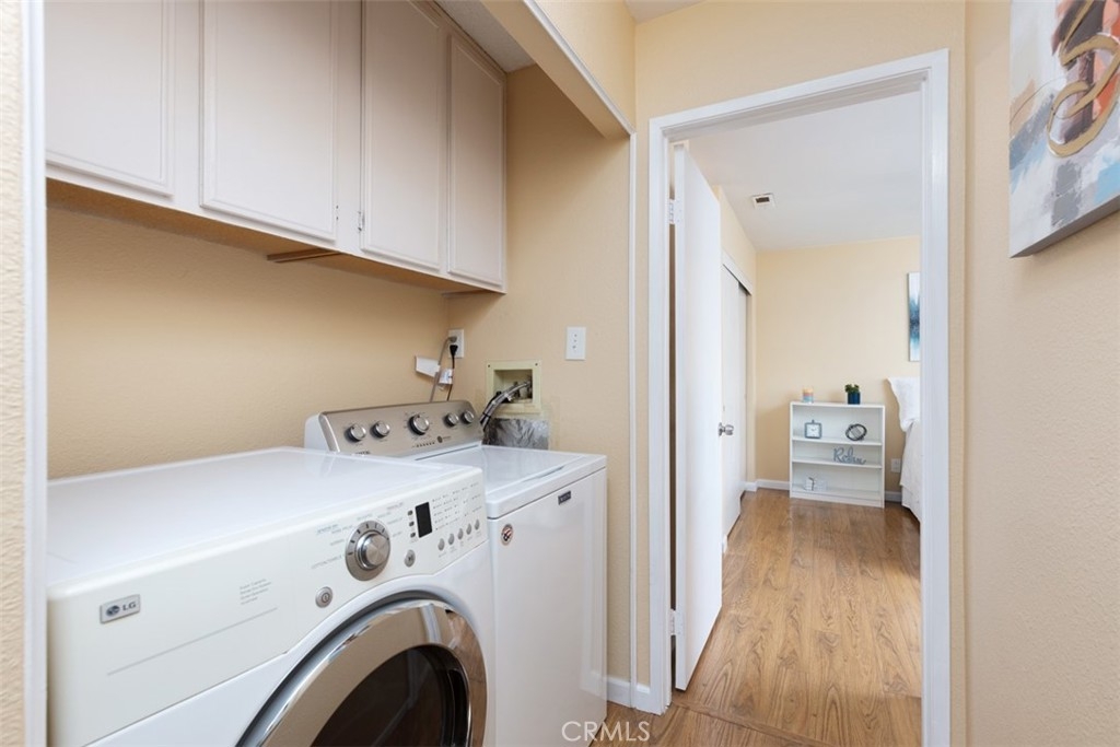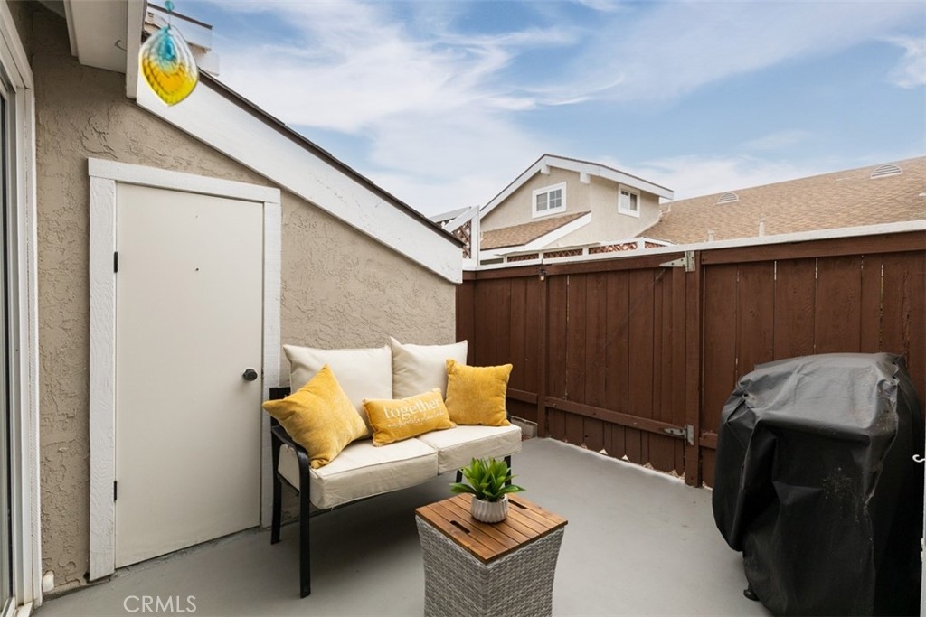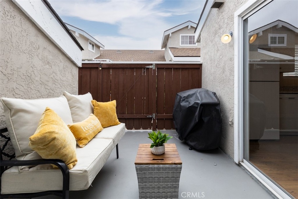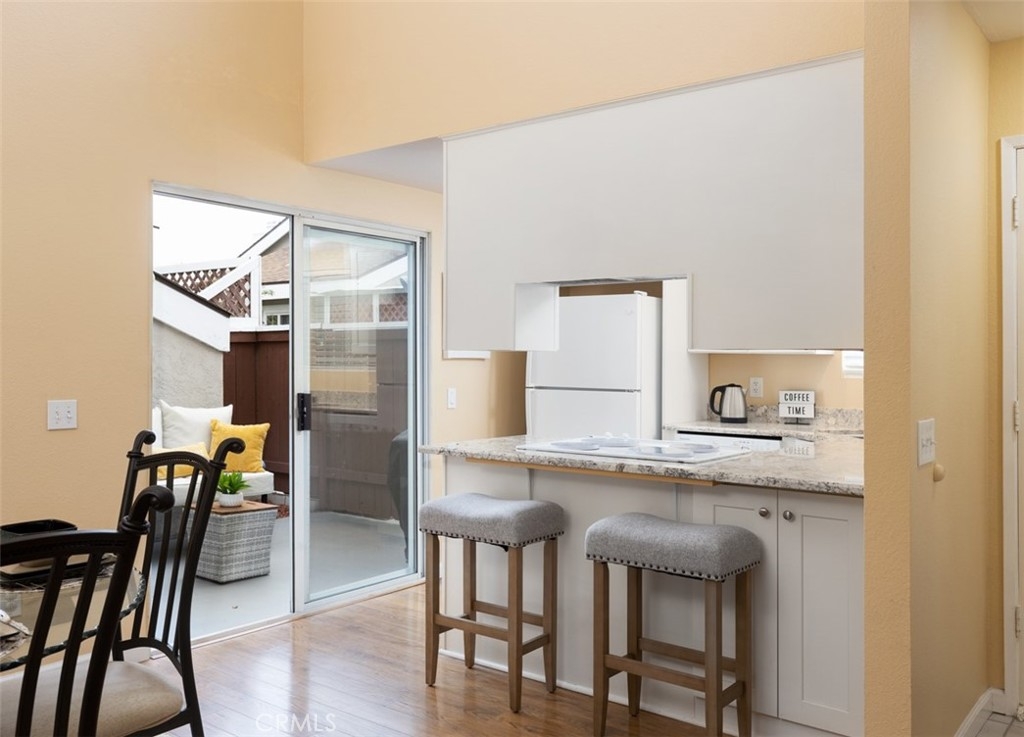 Fabulous one level, end unit in one of the best locations in the quiet and peaceful complex of Flair Oceanside. When you enter, the first things you notice are the open spacious layout with vaulted ceilings and the many upgrades including a wood-style, low maintenance laminate flooring throughout. The living room is spacious with a gas fireplace and an abundance of natural light. Dining room has high windows and is open to both the kitchen and living room. The kitchen is white and bright and features updated, soft-close cabinetry, granite countertops, and an eat-in bar area. There is a sliding glass door from the kitchen and dining area to the private patio for inside outside entertaining or dining al-fresco. There are 2 good size bedrooms, one has sliding door to the patio. Both bathrooms have been remodeled. There is central heat and air conditioning. Relax in your own fenced private patio. One car, detached garage with storage and one assigned parking spot, plus guest parking. HOA amenities include a pool and spa, tennis court, BBQ, and maintained landscaping with large grass areas along each sidewalk. HOA covers water, trash, and sewer. With Starbucks just a few minutes’ drive, the home is close to shopping, freeways, and the beach!