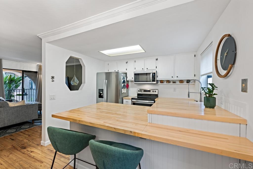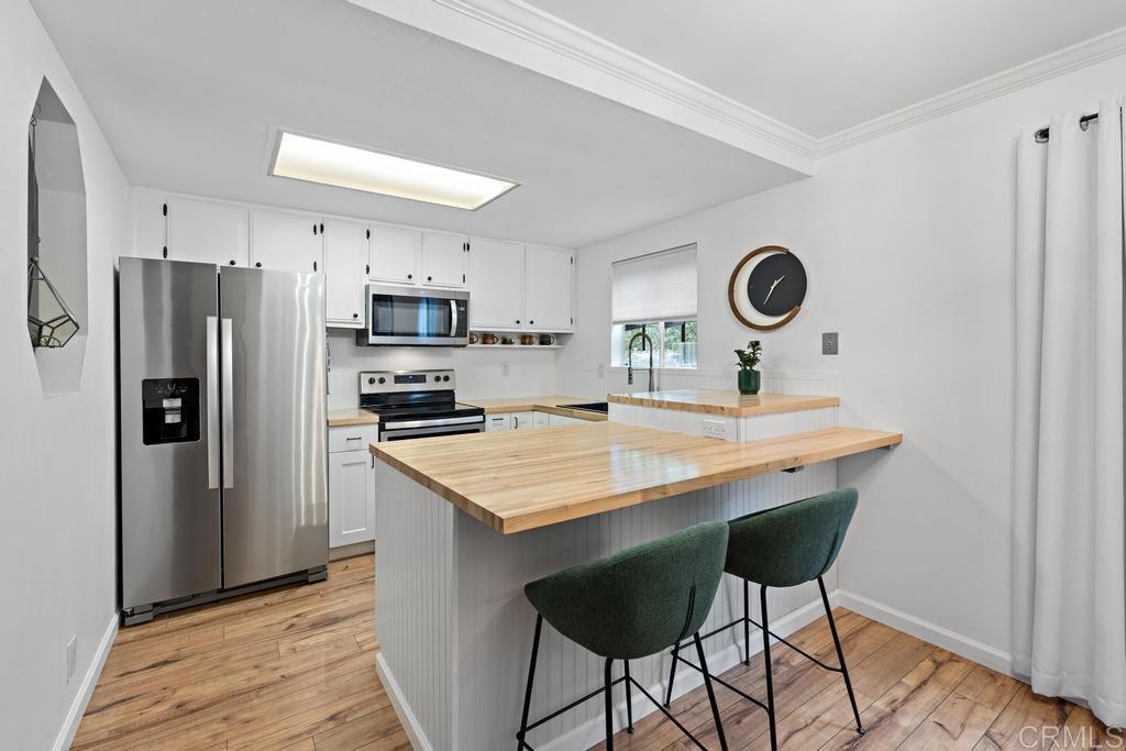 Location, location, location! Welcome to this updated 2-bedroom, 1.5-bathroom condo offering a unique blend of coastal charm and convenience. Nestled near Downtown Oceanside, just over 1.5 miles from the beach, it's ideal for anyone who loves the beach and all the fun activities that come with it.This property features a spacious living room with a cozy fireplace, an updated kitchen with butcher block countertops, stainless steel appliances, a convenient breakfast bar area, and a separate dining area. Additional features include an extra-long wall pantry with office cabinet space under the staircase, LVP flooring, updated bathrooms, custom paint, and much more. Enjoy coastal breezes from the private living room patio. The large master bedroom boasts an ensuite vanity, wall-to-wall closet, and balcony. Additionally, there is a 1-car garage with extra storage and an additional parking space. You will appreciate the convenience of your own private ventless single-unit washer & dryer, as the community offers common laundry. HOA fees include water. Whether you are a first-time homebuyer, an investor seeking a great rental property, or someone in search of a second home, this condo has everything you need. Benefit from easy access to the I-5 freeway and proximity to Camp Pendleton, making daily life a breeze. Don't miss out on the opportunity to make this condo your new home!
