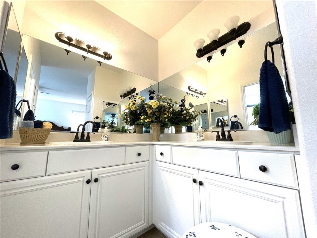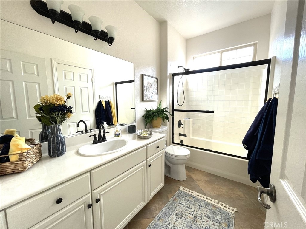 Serene. Tranquil. Calm. Peaceful. HOME. This is what you will feel as you come upon this lovely corner unit townhome. From the moment you walk into the beautiful patio, you will know you have found something special. All the plants are yours, if you would like to keep such an inviting outdoor living area. Once you enter, as you walk through the new bronze screen door, you are greeted by a wonderful floor plan, with a large, open living space that envelops you, adorned by 24 inch tile floors and new plantation shutters. The owners have kept this home in meticulous condition and it shows. The entire townhome was recently repainted. The kitchen, with gorgeous black granite counter tops, has all stainless steel appliances, lots of counter space and opens up to the living area. Also you will find new stainless steel pullouts in all kitchen cabinets, new indirect lighting, all new fixtures, built in microwave, gas range and even a devoted pantry. Also downstairs is the 3rd guest bathroom for added convenience in your living, also with new fixtures, lights and a new chair height toilet. Upstairs, you will find the primary bedroom, large enough for a king bed and sitting area, with two closets, new 2 inch blinds, and a new ceiling fan. The primary bathroom boasts dual sinks, all new fixtures, new clear glass sliding doors on the bathtub and is simply turnkey. The other two bedrooms, both with new 2 inch blinds and new ceiling fans, share the Jack-n-Jill bathroom, also adorned with the new higher chair height toilet, new fixtures and a new glass slider for the bathtub. The upstairs is also complimented by a large landing area with the enclosed laundry closet. Top of the notch washer and dryer are negotiable! The two car attached garage is fully insulated, with extra insulation on the garage door, a super long workbench, & hanging iron storage racks to make the best use of your garage space. New water heater was installed about a year ago. The Casitas at Spring Creek is a VA approved condo complex, has tons of guest parking, easy access and just feels uncrowded as you drive in. It boasts a pool, spa, playground, BBQ and picnic area. This lovely condo is conveniently located in the heart of Oceanside, between the 5 and 15 freeways, and just minutes from shopping, restaurants, and more!