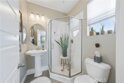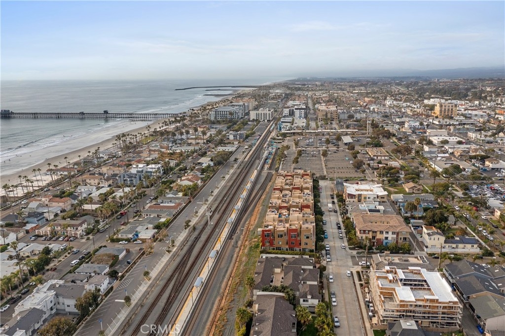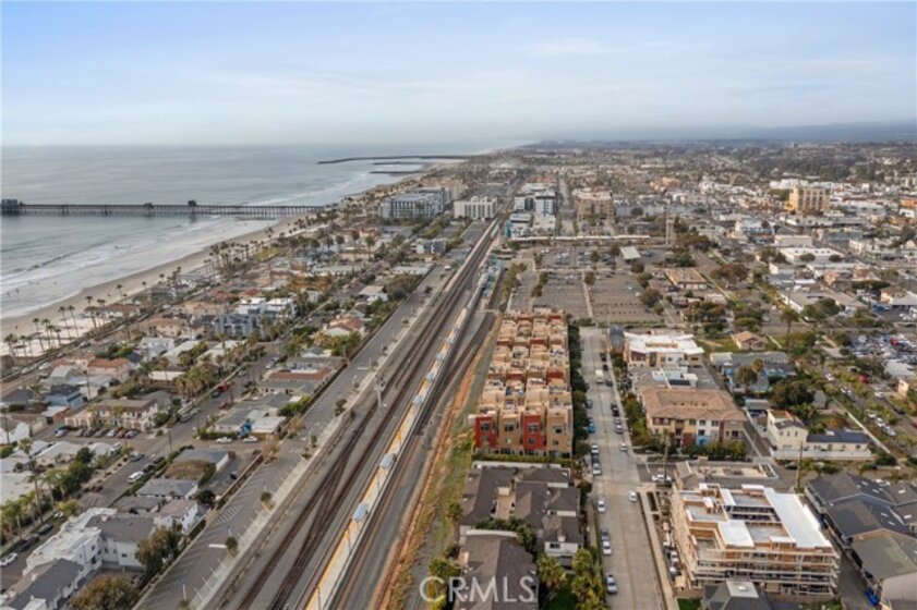 DESTINATION LIVING ~ EASY WALK TO THE OCEAN AND PIER ~ COME LIVE THE BEACH LIFE! This townhome is meticulous with a fantastic urban feel! Offering 3 bedrooms, 3 bathrooms, a 2-car attached garage and balcony! Designer touches include quartz counters, stainless steel appliances, custom white Euro cabinetry, engineered wood flooring, neutral paint and more! This unit is located on the end has extra windows and great natural light! Main living offers a bedroom and full bathroom. Primary suite is located at top level with ceiling fan, walk-in closet, wood-tile flooring in bathroom, dual Mansfield sinks and a walk-in shower! An additional bedroom with its own bathroom with a tub/shower combo is located on the same floor! A full laundry room has lots of storage plus counter space. This 8 unit complex is only 7 years old and shows pride of ownership! Sit out on your private balcony and savor the ocean breezes, colorful sunset and beach air! This is truly a beach lovers paradise! Conveniently located near great dining, shopping, entertainment and walking distance to the Coaster Commuter Rail Service to downtown San Diego and more! Hurry, don't let this one get away!