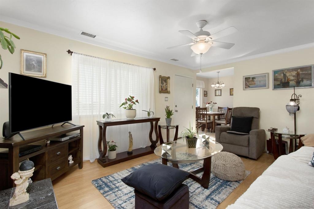 Welcome to your ideal retreat in Costa Serena, a highly desirable 55+ community known for its peaceful surroundings and convenient location. This beautifully maintained single-story home offers 881 square feet of thoughtfully designed living space, where comfort and functionality come together in perfect harmony. Step inside to discover a bright, updated kitchen that flows effortlessly into both a formal dining room and a cozy breakfast nook — giving you flexible options for dining and entertaining. The living room is complete with a cozy gas fireplace, provides a warm and inviting atmosphere for everyday living or hosting guest. Modern conveniences include an efficient AC unit, solar panels for low monthly bill, and an attached one-car garage with additional storage space located behind the home. Outside, your private backyard offers a serene escape, featuring a low-maintenance drip irrigation system, terraced steps to an elevated portion of the property, and a side yard perfect for gatherings or enjoying the California sunshine. The front yard showcases drought-tolerant succulents maintained by an automatic sprinkler system, adding vibrant curb appeal with minimal upkeep. A stuccoed retaining wall matching the house adds a welcoming touch to guest as they walk to the door. Located just minutes from shopping, dining, and the stunning beaches of Oceanside, this home offers the best of Southern California coastal living. The ocean can be seen from the house on a clear day! Don’t miss the opportunity to enjoy comfort, convenience, and community in Costa Serena!
