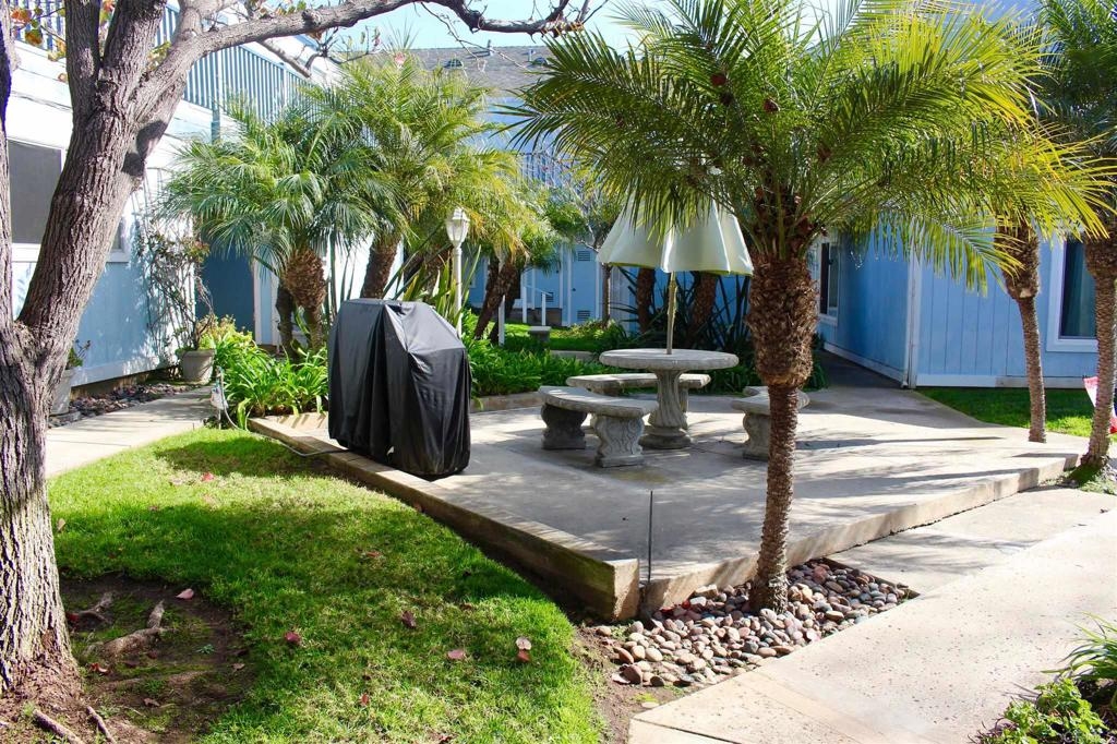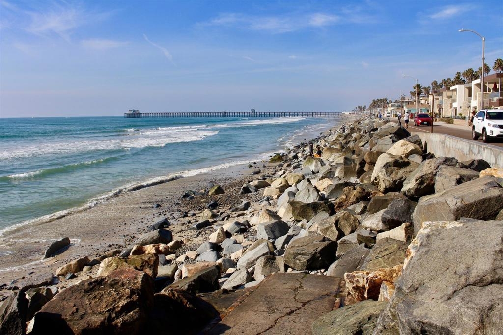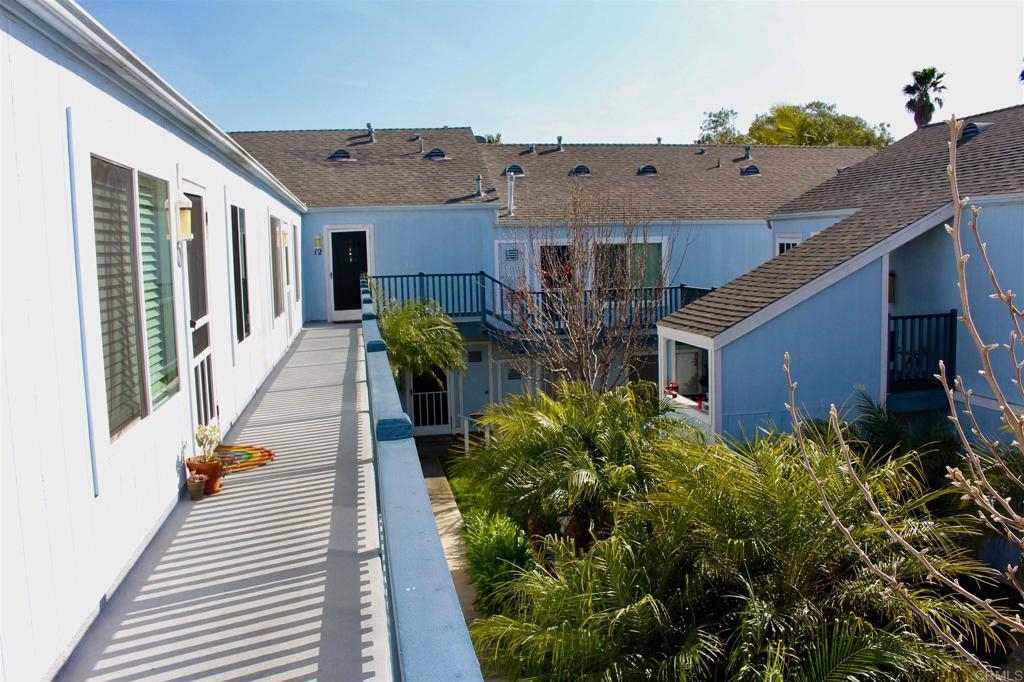 The Quintessential Beach Condo! Amazing location. Conveniently located within walking distance to the beach, the Pier, the train station, and all that the recently redeveloped downtown Oceanside has to offer.. This beautiful condo offers 2 bedrooms, one bath. Remodeled kitchen and bathroom with granite countertops, backsplash and stainless steel appliances. Laminate flooring throughout. Fresh paint & Brand new carpet just added... Peek-a-boo ocean view off the living room on those clear summer days! This condo is located in a gated, very quiet complex consisting of only 15 other units, all of which overlook the common area offering lush tropical landscape, additional seating and BBQ area and also a community laundry room. Additional storage and a one car garage directly below the unit for added convenience. Great investment opportunity or for someone looking for the laid back, no hassle, coastal/urban lifestyle!!