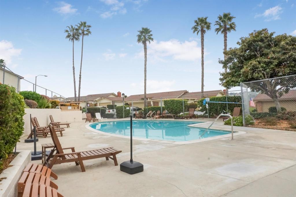 Nice Clean 3-bedroom unit with 2.5 bathroom's and a detached 2 car garage. Conveniently located near the club house and pool. Home has garnet counter tops in the kitchen and bathrooms. Tile floors in kitchen and bathroom, and fresh paint in the whole home. Inside laundry area, plus a cute private area in back for relaxing, entertaining and dinning. Great community pool, club house, tennis court, and trash are included with your HOA fees. This home is zone in an area with great Oceanside schools and walking distance to Mira Costa College. Stackable washer dryer, refrigerator convey. VA/FHA Welcome