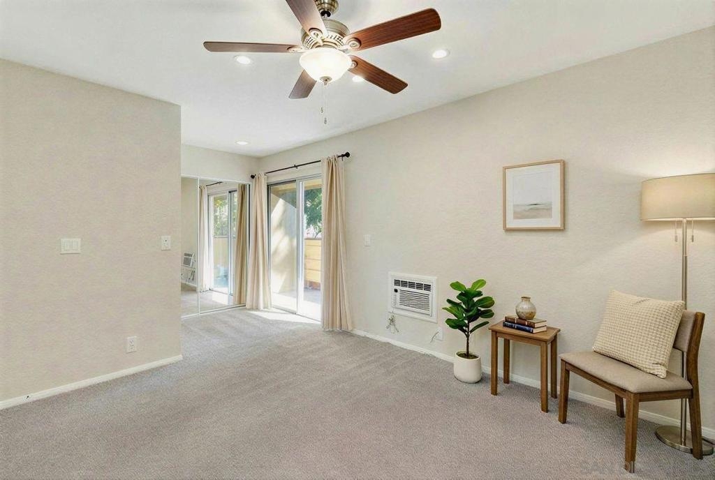 Seller will contribute up to TEN THOUSAND DOLLARS ($10,000) TOWARDS A PERMANENT INTEREST RATE BUY DOWN with accepted offer. Ask your lender/agent how much money that will save every month! This beautiful, well-appointed 3-bedroom condo presents the largest floor plan in the complex, featuring an oversized outdoor patio and a second-story balcony enjoying greenbelt views. Fresh interior paint, recessed lighting, and tile floors across the open-concept living area set a perfect tone. You get an A/C unit for hot summer days, washer/dryer hookups, two assigned parking spots (one covered carport), guest parking privileges, a large community pool, and yes, it is VA approved! The kitchen and dining space boast granite counters, warm wood cabinets, stainless appliances, and a brand-new fridge, flowing perfectly through large sliding doors to the showstopper: a massive ground-level private patio with paver hardscape, tall privacy walls, and mature Sago palms. It is a fantastic outdoor oasis—perfect for entertaining, relaxing, or an outdoor play space. Upstairs, brand-new carpet spans the entire second level, recessed lighting continues above, and the large private balcony offers a second outdoor retreat. Gated Forest Glen provides resort-style amenities like a large pool, BBQ/picnic areas, and lush greenbelts. Prime Oceanside locale near the San Luis Rey River Trail, Harbor, beaches, Hwy-76, I-5, shopping, dining, and Camp Pendleton. Rare at this price, you dont want to miss it!