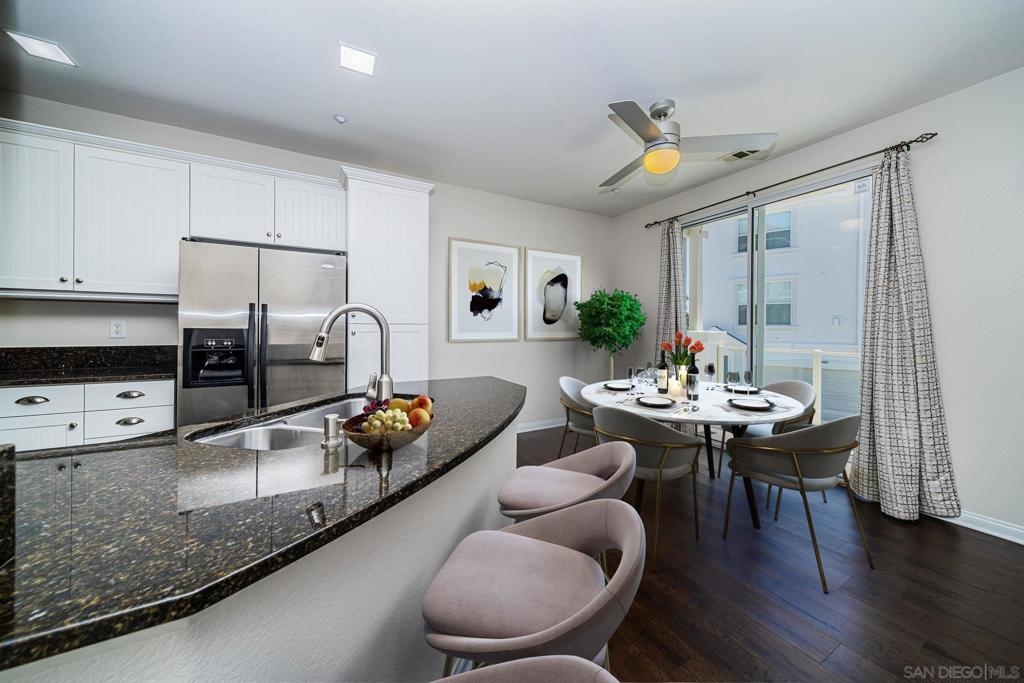 Experience your new coastal haven and enjoy fabulous ocean breezes!! This townhome is located in a private, gated complex a short e-bike distance from the iconic Oceanside pier and Downtown making it easy to enjoy a beach day or dinner at one of the amazing restaurants in Coastal Oceanside. The entire complex has recently been painted in neutral and white tones and this unit has also just been freshly painted on the interior adding to the light and bright feel of this 3 story townhome. The home features two primary suites located upstairs from the living area with plush newly installed carpet. The living area is open concept allowing you to cook, while guests can sit and enjoy time at the breakfast bar or chat in the family room. The kitchen features granite countertops, gas cooking, and plenty of storage creating a great space for those that love to cook. Revel in the convenience of modern amenities like a children’s playground, pool, spa, basketball court, and party room. A brand new furnace was just installed allowing you to keep cool during those beach days and warm when the temperature drops below 70, making every day a delight in your new home.