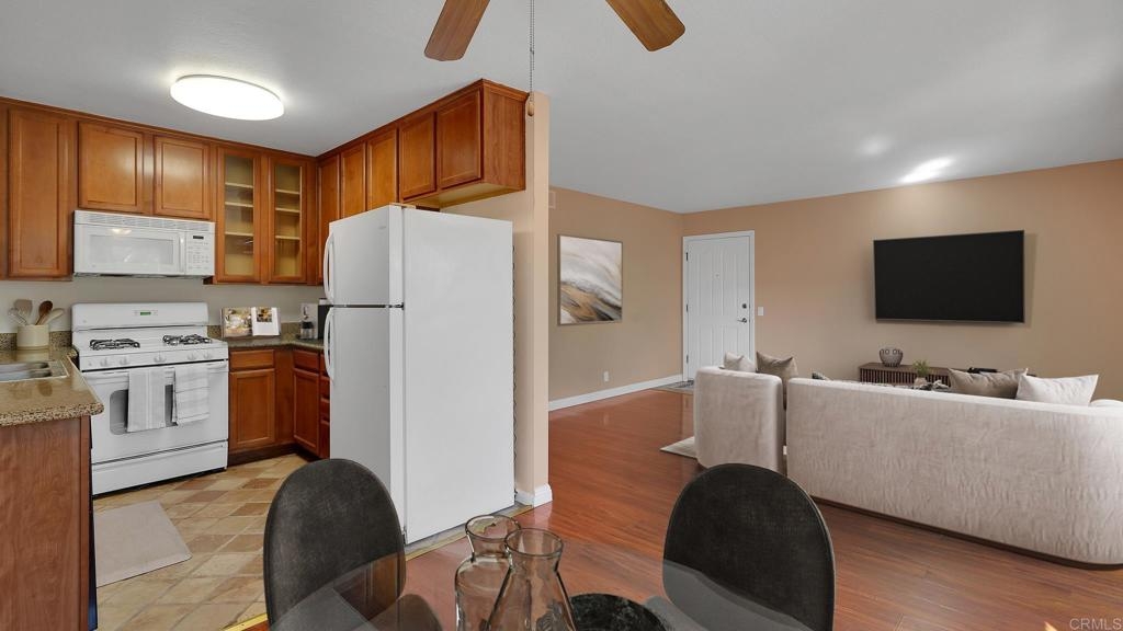 Welcome to this charming, updated 2-bedroom, 2-bath condo in beautiful Oceanside! This move-in-ready home offers 856 square feet of open living space, fresh paint, and a well-appointed kitchen with a gas range—Ideal for those who love to cook. The airy dining area seamlessly flows into the spacious living room, creating an inviting atmosphere. Step outside to your private patio, where a dedicated laundry closet with a washer and dryer adds convenience. Enjoy community amenities, including a sparkling pool and relaxing spa. The condo has an assigned carport and ample guest parking for added ease. Located in a prime area, you're just 10 miles from the beach and within walking distance of Libby Lake, Libby Elementary School, a large park, and a dynamic skate park. Plus, with nearby shopping, public transit, and a popular bike trail, this home offers the perfect blend of convenience and recreation. Don't miss this rare opportunity to own a beautiful condo in a thriving neighborhood! Welcome Home.