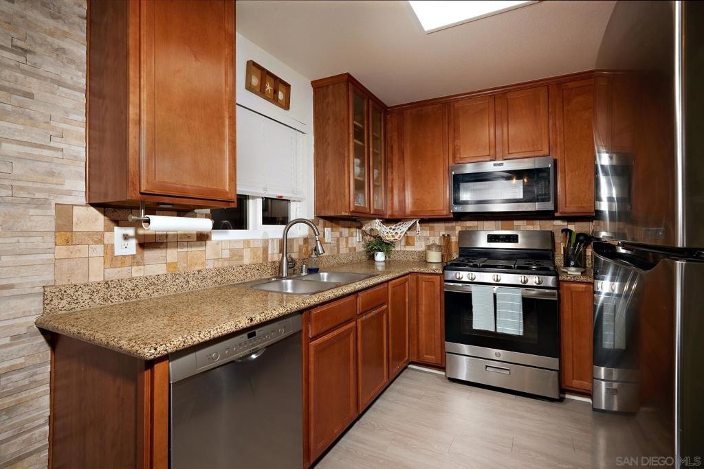This is a great opportunity to own a very cute and quaint upper level unit with a lake view off the balcony. This 2 bedroom 2 bath home has modern vinyl plank flooring and upgraded carpet in all the right places, dual pane windows with granite counter tops, stainless steel kitchen appliances, gas cooking and full size laundry. Lakeshore Villas offers a private pool & spa and is conveniently located to schools and shopping near by. This is a great value to own in Oceanside! Complex Features: , Sewer: Sewer Connected Topography: LL Frontage: Lake/River