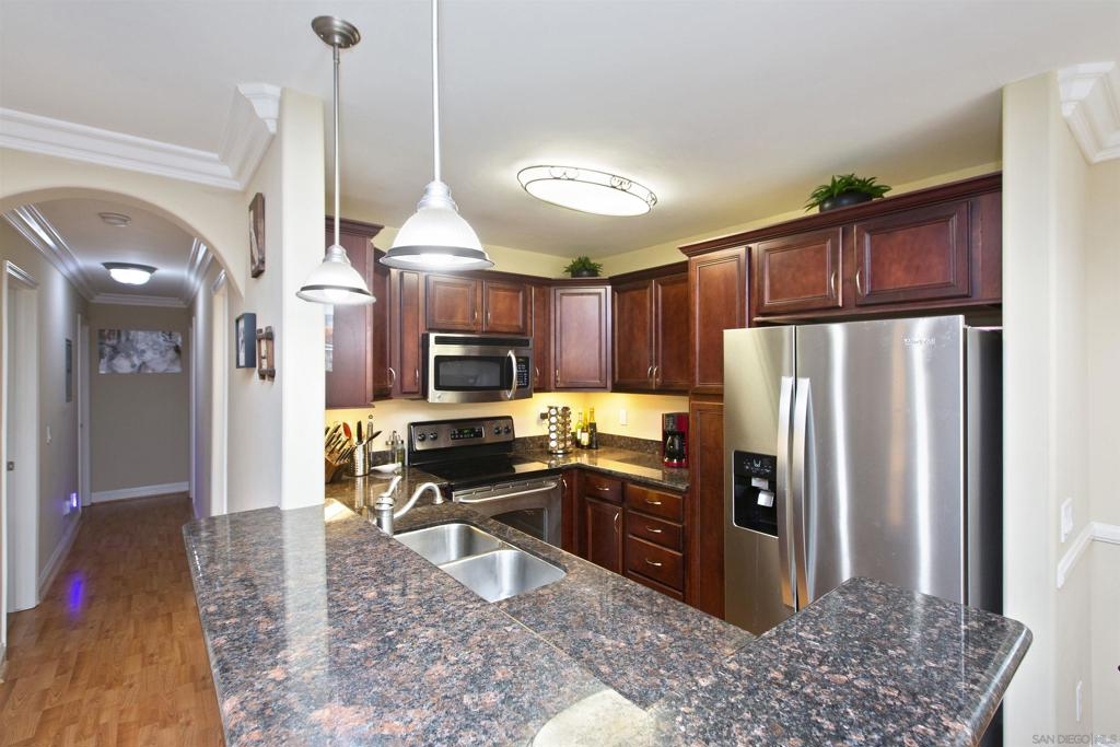 Welcome to the beautiful community of Las Brisas in the desirable Loma Alta neighborhood of Coastal Oceanside! Live just 2.5 miles from the beach in this breezy, upstairs, 3-bedroom, 2 full bath condo. This home overlooks the pool and offers: double-French doors that open to the patio, crown molding throughout, a large primary bedroom with dual closets, and a detached 1-car garage + assigned parking space. This complex is immaculately maintained and offers a pool/spa, tennis court and a sports court. HOA includes water, sewer & trash. Equipment: Dryer, Washer Sewer: Sewer Connected Topography: LL