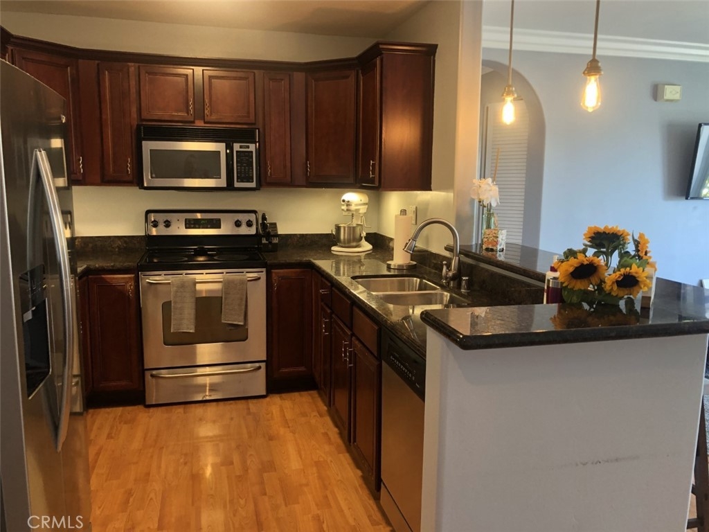 Great buy.....First time home buyer, second home, or just want to feel the ocean breezes. This 2 bedroom 2 bath condo is only a 5 minute drive to the Oceanside Pier. French doors open to your private deck looking out at the lush landscaping. Fire up your bar-b-que and sit and enjoy your dinner while enjoying ocean breezes. The kitchen, dining and living room are great room style with a breakfast bar, granite counters and stainless steel appliances. Both bathrooms feature granite counters and cherry-wood cabinets and each bedroom has a walk-in closet. The condo complex was renovated down to the studs in 2006 and some of the newer features include dual pane windows, crown molding, arched hallway pass way and includes the washer/dryer, refrigerator, range, dishwasher and microwave. This unit also comes with a large exterior storage closet at the top of the stairwell next to your front door. The Las Brisas complex offers a pool, spa, tennis and basketball courts and is minutes to shopping, schools, & freeways, yet tucked away in the quiet Historic Loma Alta neighborhood. The monthly HOA fee covers all common area maintenance along with water, trash, hot water and limited insurance.