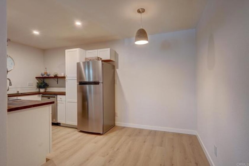 Beautiful views of mature pine trees, this cute 2 BD/1BA condo boasts plenty of natural light, neutral-fresh paint, a nice-comfortable open floor plan w/ new flooring throughout, remodeled kitchen with brand new white shaker cabinets, handy pot rack, new butcher block countertops, beautiful gold hardware, stainless steel sink and all brand new sparkling stainless steel appliances. The spacious dining room is adjacent to the kitchen for ease of dining and entertaining. The generous living room opens to a convenient deck for enjoying lazy afternoons & evenings w/ friends & family. Full remodeled bathroom w/ comfort height toilet, new tub, vanity, lighting, medicine cabinet, mirror, vanity & hardware. New ceiling fans, window screens, led lighting. Private, detached garage plus 1 assigned space, community laundry room, pool & spa. Close to the beach, freeway.