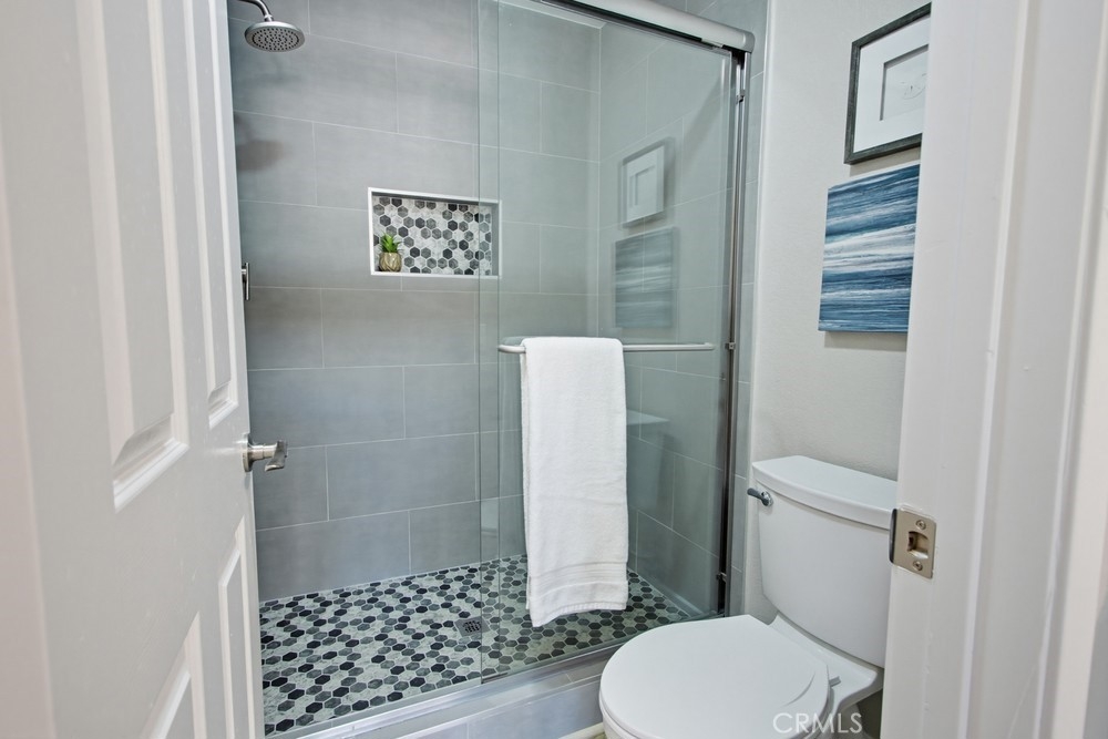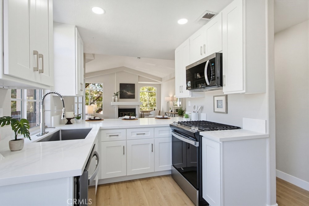 Beautifully Remodeled Home in Gated Community with Pool & Mountain Views! Welcome to this completely renovated 2-bedroom, 2-bath upper-level condo with high vaulted ceilings in the sought-after Rancho Del Oro neighborhood of Oceanside. Featuring 1,008 sq ft of modern living space, this home has been upgraded from top to bottom with new flooring, fresh paint, a brand-new kitchen, with new appliances, and fully remodeled bathrooms—Basically a new home! Enjoy bright, open living spaces and a private balcony with sweeping views of the pool and distant mountains, perfect for relaxing or entertaining. The well-designed floor plan offers two spacious bedrooms, including a master suite with a walk in closet, en suite bathroom, and french doors opening to its own private patio overlooking the pool and mountains. This unit includes ample storage, in-unit laundry, a one-car garage plus one additional parking space providing rare convenience for the area. The community offers secure gated entry, a sparkling pool, spa, and walkable paths. Located just minutes from the beach, downtown Carlsbad, shopping, dining, parks, and easy freeway access, this home combines comfort, style, and a fantastic location. Don’t miss this turnkey opportunity in Oceanside!