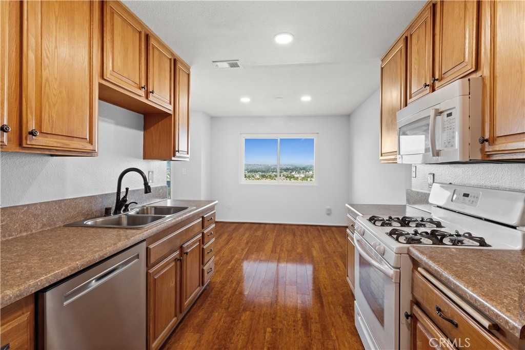 VIEW, VIEW & MORE VIEW – Painted with sunshine, A Rare Gem! ~~ Stunning views in this rarely available, upgraded 3-bedroom, 2-bath end-unit, one story unit, sitting on top of the valley in the sought-after Quail Ridge community~ conveniently located near all and just minutes from the ocean. The expansive living room is the showstopper, offering breathtaking panoramic views that stretch for miles. Flooded with natural light, it opens to a spacious balcony, the perfect place to relax and soak in the scenery. Spacious bedrooms feature views from every room, creating a bright and serene atmosphere. The primary suite is a private retreat with a walk-in closet, while the upgraded primary bath boasts dual sinks, Privacy toilet, and a shower area. The secondary upgraded bathroom is a true oasis with a luxurious jacuzzi tub, perfect for unwinding after a long day. Designed for both style and convenience, this home features wood floors, plush carpeting, dual-pane vinyl windows, recessed lighting, and a recently upgraded HVAC system & water heater. The indoor laundry room adds to the ease of everyday living. Enjoy the added benefit of an attached one-car garage under the unit & an additional assigned parking space. The resort-style community amenities include a sparkling pool and spa, creating a tranquil escape right at home. The HOA fee includes Water & trash. This is the ultimate blend of warmth, comfort, and convenience ~~~A turnkey gem with million-dollar views is the place to call home!
