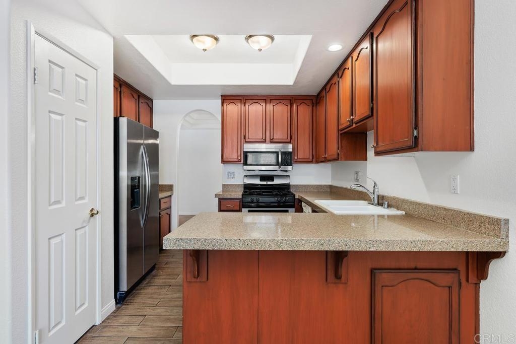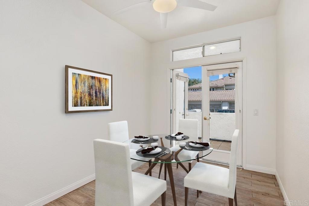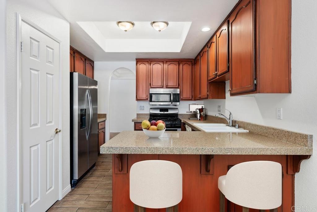 The coastal condo in the gated community of Mission del Oro is VA approved. This beautiful 3-bedroom single level ground floor condo. Open great room concept with private outdoor patios to host your gatherings or enjoying leisure time. Located on the backside of the building giving you views of the greenbelt. Cozy up to your fireplace, enjoy your updated kitchen with granite transformation countertops, breakfast bar and outdoor patio space. Large primary suite opens to a private updated bathroom with dual sinks, step in shower, and oversized customized closet. You will enjoy the updated flooring and updated hall bathroom. This unit offers in-unit laundry, a single car private garage with additional storage space and one additional assigned parking space. Newer hot water heater, AC unit, Ceiling fans and remote-control blinds in primary bedroom are a few more of the upgrades. Conveniently located just minutes from beaches, dining, shopping, schools, higher education campuses, healthcare, golf, and more. Mission del Oro is a VA/FHA approved gated community with a pool/jacuzzi and recreational space for your enjoyment. A dream condo in a dream location.