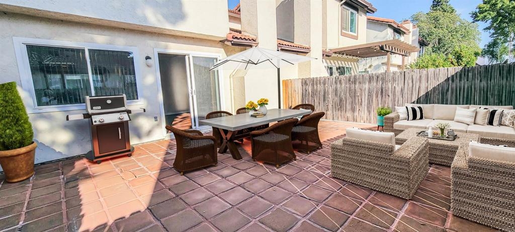 PRICE REDUCTION. Need a rate-buy-down credit? FHA AND VA APPROVED! Welcome to this 3-bedroom, 2.5-bath, 2 car garage townhome in the desirable Mission Meadows community of Jeffries Ranch, Oceanside. Proudly offered for the first time on the market, this home has been lovingly cared for by its original owner. The images have been virtually staged and kitchen and vanities viturally upgraded to show you the potential of this townhouse. This home offers a bright and inviting living room with vaulted ceilings and a charming brick fireplace, creating the perfect space to relax or entertain. Sliding doors open to your private spacious fenced patio, ideal for gatherings or quiet mornings outdoors. The property features laminate wood flooring throughout the home, with tile in the kitchen and bathrooms for durability and style. The kitchen provides ample counter space, plenty of storage, and flows seamlessly into the dining area. Upstairs, the spacious primary suite boasts vaulted ceilings, abundant closet space, and bathroom. Two additional bedrooms provide comfort and flexibility for family, guests, or a home office. Additional highlights include: Fresh and inviting entryway with lush plants, offering both privacy and curb appeal Two-car garage with generous storage space, plus washer and dryer included Low HOA fee with access to Mission Meadows pool and spa Planned Unit Development (PUD), making it VA and FHA loan approved Enjoy a sense of privacy with its end-unit placement in a cul-de-sac, while still being conveniently close to schools, shopping, dining, Highway 76, and just 15 minutes from the coast. Don’t miss the opportunity to own this charming Oceanside home that perfectly blends comfort, convenience, and community!