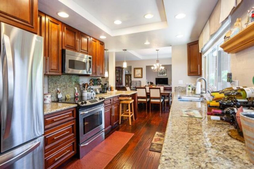 Presenting Mission Meadows in Jeffries Ranch. Very well appointed 1-story 3 bedroom, 2 full bath townhome end unit with vaulted ceilings, living room fireplace including A/C. Upgrades include galley kitchen & stainless steel appliances, generous granite counter space, custom cabinetry, and custom lighting. Primary bath includes custom tile floors, shower & custom cabinets. Expansive outdoor patio that's fully fenced and landscaped with timed watering system. Oversized dual garage also has storage cabinets. Newer roof with blown insulation, recently painted, low monthly HOA includes a community pool & open space. Your buyer will appreciate the thoughtful planning in this beautiful home!