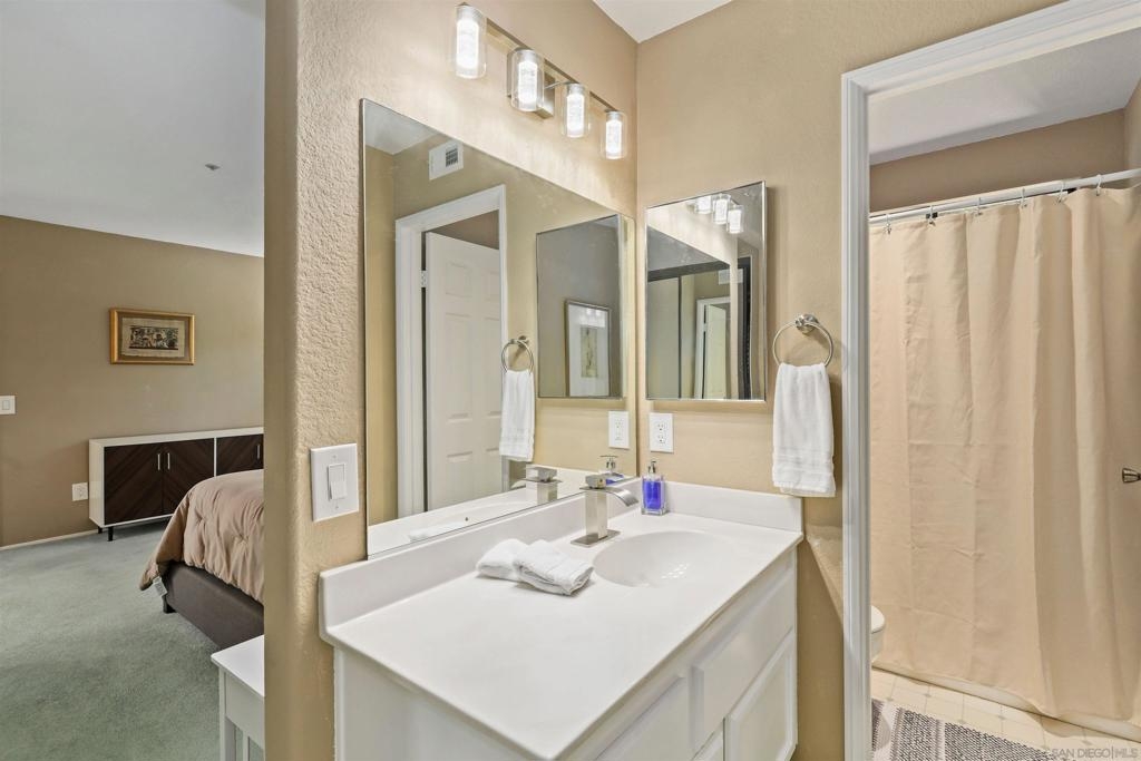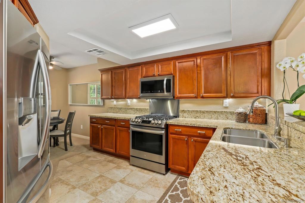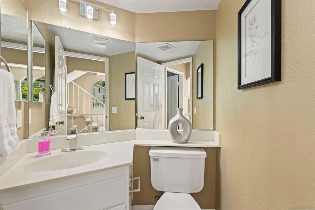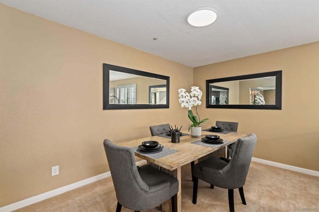 Welcome home to Mission Point! This tri-level corner unit is very private and gets fabulous sunlight in the morning. Imagine enjoying your coffee on the private patio soaking in the glorious warmth of morning sunlight and cool ocean breezes. The lower level features direct garage access and a bonus room that is a great flex space and can be used as a gym, craft room, media room, office, homeschool area or wine cellar - the choice is yours! The main level enjoys a spacious living room with cozy fireplace, dining room, updated kitchen, secondary living space/den plus a half bath. A gorgeous corner patio with two sets of sliding glass doors provides plenty of natural light and an inviting indoor outdoor atmosphere. The kitchen has an abundance of cabinet storage space, granite counters, brand new stainless steel LG appliances that convey and counter seating. The den is perfect for a quiet retreat to catch up with loved ones. Meander upstairs and midway you will want to stop and sit on the quaint reading nook on the landing. Continue to the upper level where you will find dual primary suites with tons of closet space and room for you to make your own! In the last 2 years since they purchased this home, the sellers have lovingly added improvements for you to enjoy including a brand new bonus refrigerator in the garage to convey, replaced all of the electrical outlets and added GFCI protection in the kitchen, installed new faucets in all bathrooms, replaced every interior light fixture, added shutters, installed ceiling fans, painted the cabinets and interior walls, installed a new security screen door, Nest thermostat, added carpet to downstairs bonus room. Sellers want to sell the home COMPLETELY furnished, ALL furnishings have been purchased in the last two years. Mission Point offers its residents a sparkling pool, spa, tennis, playground, workout facility, clubhouse, and additional guest parking. Less than 15 minutes from the beach and I-5 for easy commuting. Grocery stores, coffee shops, convenience stores, entertainment venues and more are just down the street! Don't let this opportunity pass you by!