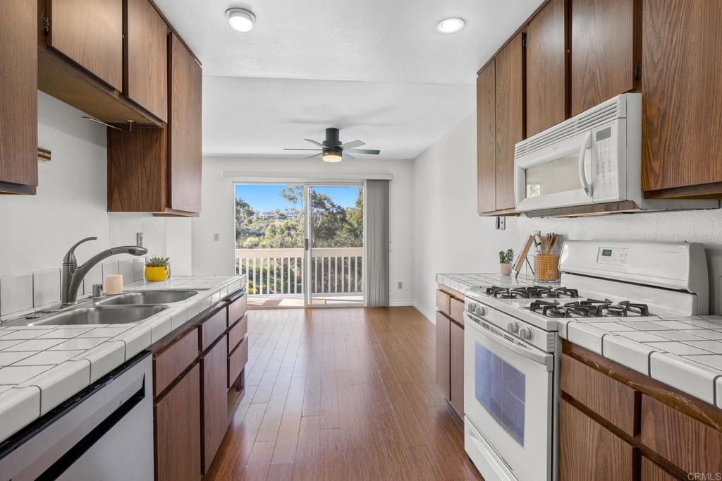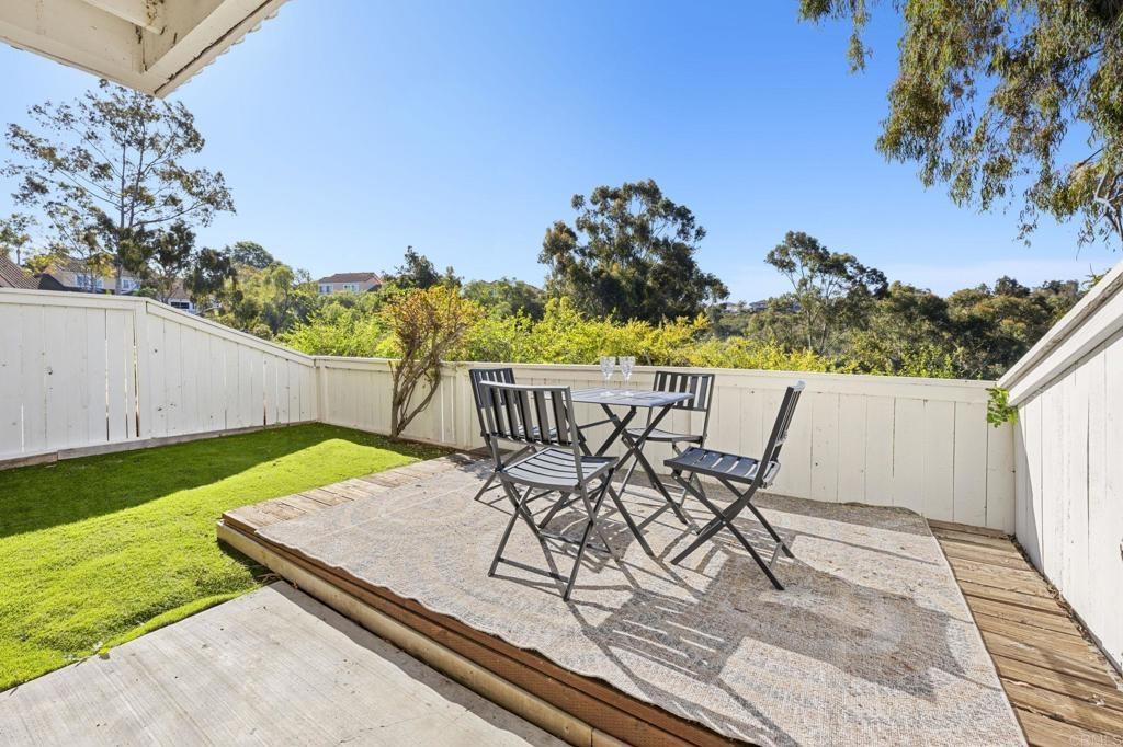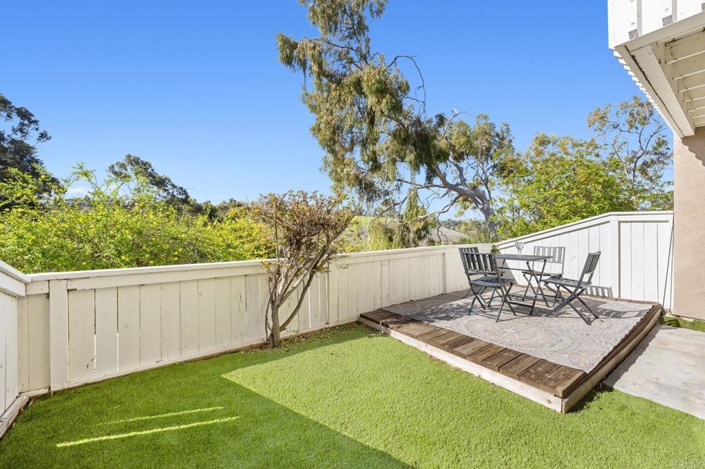 Welcome home! Located in a quiet corner of the Quail Ridge neighborhood, you get to wake up each morning, step out onto the balcony or private backyard and enjoy the peaceful, tree-filled unobstructed view of the rolling hills of Oceanside. Just a stone’s throw from beautiful hiking trails and all that the California coast has to offer, this light and bright home has a big kitchen with a separate laundry room, primary bedroom and bathroom suite with access to the backyard, attached garage and no staircase up to your front door. Enjoy an entry level kitchen, dining room, living room, bathroom, laundry room and private balcony. With 2 bedrooms and 2 bathrooms downstairs, there is plenty of room to entertain and separate living space to relax and rejuvenate. Invite friends and guests to enjoy your peaceful Oceanside home or just enjoy this quiet spot all on your own. The community is FHA and VA approved! The neighborhood is pet friendly and the HOA covers your trash, sewer and water expenses. Close to biking trails, shopping, restaurants, schools, Mission San Luis Rey, Camp Pendleton and a 10 minute drive to the beach!