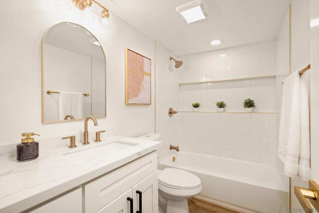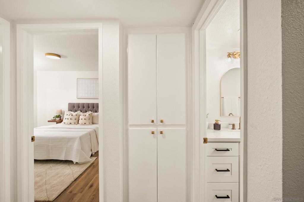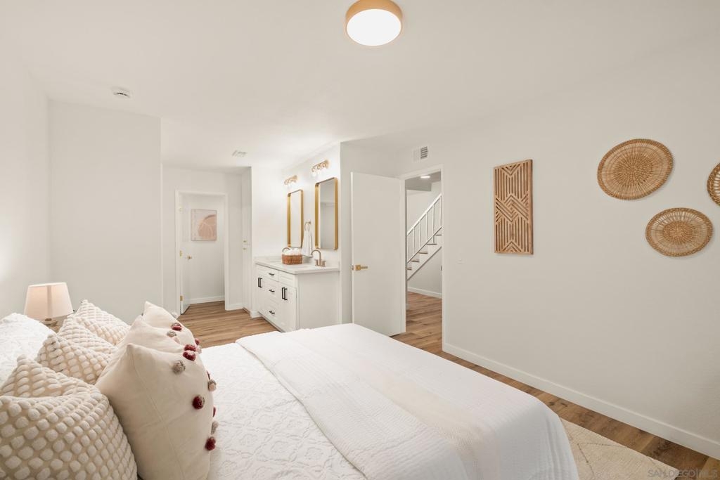 Two story 2 bedroom 2.5 bathroom in the Quail Ridge community in Oceanside. An attached one car garage plus additional assigned parking space. The common area is your main level with a half bath, extra storage, galley kitchen, living room with balcony access, and a dedicated laundry room area. Downstairs you will find two spacious bedrooms and two full bathrooms. Designer touches and upgrades throughout will make you feel right at home. A private patio off of the primary bedroom. The community includes 2 pools with spas. Close proximity to San Luis Rey Mission expressway that will take you straight into downtown Oceanside, Oceanside Harbor, and Oceanside pier. Enjoy easy access to scenic bike trails, shopping centers, and all the essentials—just minutes from your doorstep!