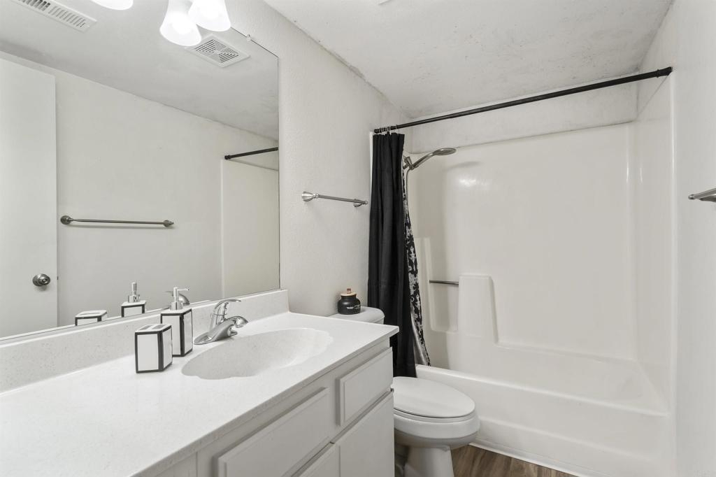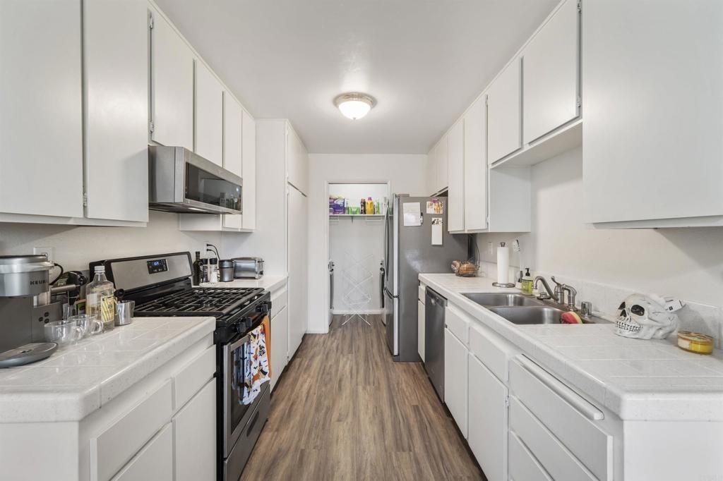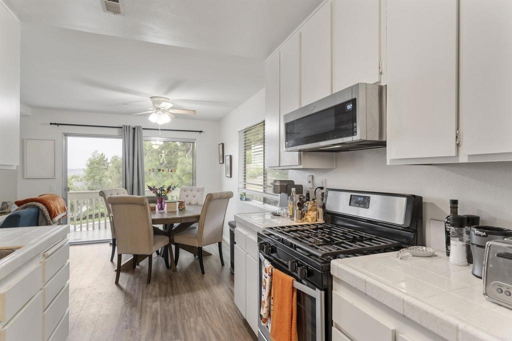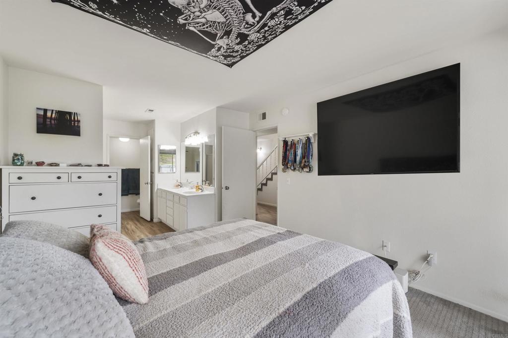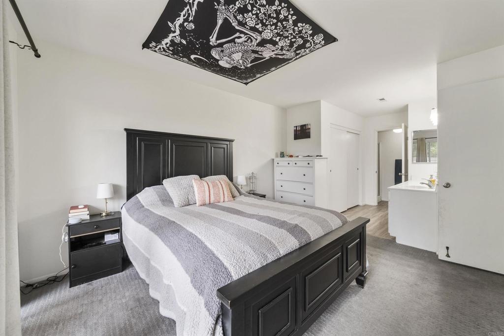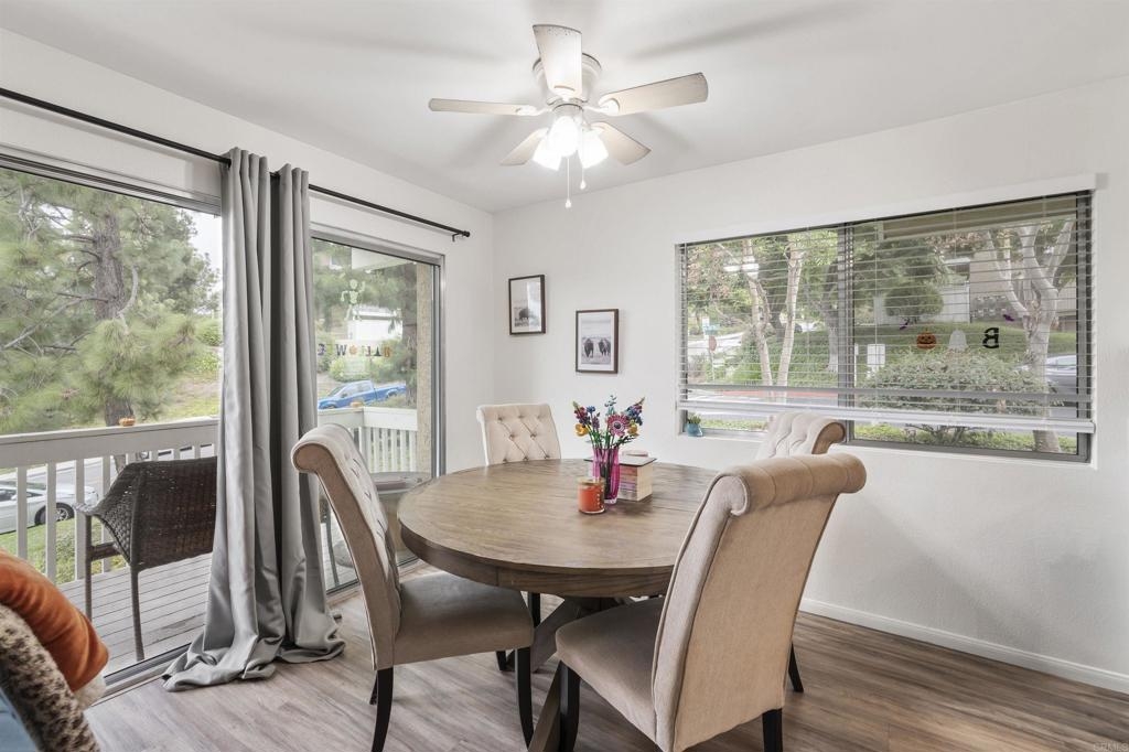 Great starter home or investment property that HAS IT ALL! Located in the beautiful community of Quail Ridge, have the affordability of a condo with many perks of a single-family home including an attached garage and yard in this two-story END UNIT! The ground level entry leads to a spacious foyer with access to the single car garage with opener, half bath for guests, utility closet, and coat closet. The foyer opens to a light and bright, open concept living and dining room with large windows, including a bonus East facing window the middle units do not have. Sliding doors lead to a covered balcony where you can open the home to the cool ocean breeze and enjoy beautiful views of mountains and San Luis Rey Valley. The attached galley kitchen features a wide walking space allowing multiple people in the kitchen to move around, a full-size stainless-steel refrigerator, dishwasher, microwave, gas range, and a laundry nook. Modern, neutral color scheme with newer paint, laminate flooring, and carpet. Downstairs you will find an additional storage closet and cabinets in the hallway, a full secondary bedroom and bathroom, and the primary suite that features a dual sink vanity, walk-in shower, and sliding doors opening to a private patio and yard big enough for pets, play, and gardening. Easily access the yard and downstairs via your own private gated entrance. This ideal Northeast facing unit is not exposed to the afternoon sun, so stay cooler indoors and enjoy your yard in the evening! Includes one assigned uncovered parking space and, with Mission Gate Drive being right around the corner, this unit has some of the most accessible access to the ample street parking available in the community. Amenities include two heated pools and Jacuzzis with changing room/bathroom facilities, a rentable clubhouse, and a walking nature trail. Located just five miles from the ocean and offers quick access to schools, Martin Luther Kink Park, the 76 Highway, and is walking distance to Old Grove Marketplace where you will find shopping, restaurants, banking, and more!