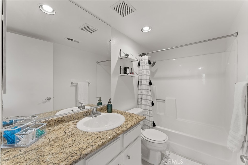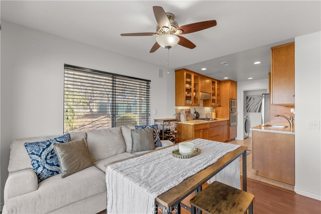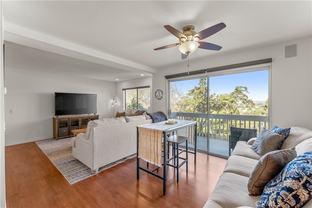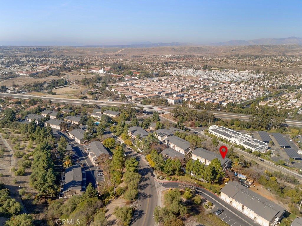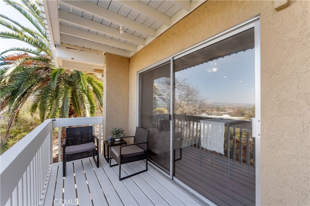 PANORAMIC VIEWS! VA & FHA APPROVED! Beautiful, 2 story, end unit townhouse style condo with yard & attached private garage. Tastefully done, SUPER CLEAN, turn key condo. Updated kitchen with custom cabinets, stone counters, stainless steel appliances, with mosaic black splash and more. NEWER AC WITH WIRING installed for warm days. Private IN-UNIT LAUNDRY accommodates full size washer and dryer. The dining area opens to the balcony with expansive, panoramic views. Recessed lighting throughout both floors with new wall sconces and new front door. Direct access from your private garage for convenience! The primary bedroom is large with double sinks, shower and has direct access to a fantastic, private small yard surrounded by trees. The secondary bedroom has custom built-in shelves for storage on 2 walls. Community has pool, spa and recreation area. Minutes to CAMP PENDLETON, MISSION SAN LUIS REY, SHOPPING AND THE BEACH!