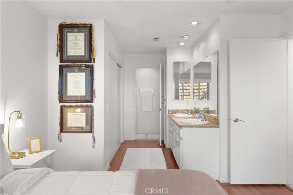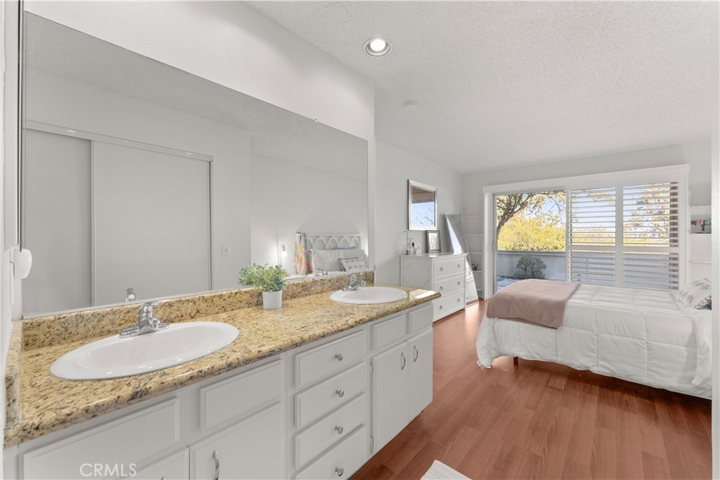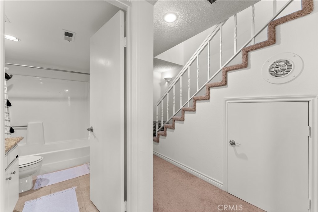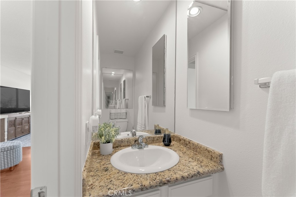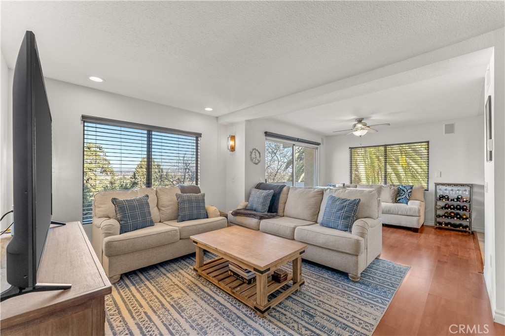PANORAMIC VIEWS! VA & FHA APPROVED! Beautiful, 2 story, end unit townhouse style condo with yard & attached private garage. Tastefully done, SUPER CLEAN, turn key condo. Updated kitchen with custom cabinets, stone counters, stainless steel appliances, with mosaic black splash and more. NEWER AC WITH WIRING installed for warm days. Private IN-UNIT LAUNDRY accommodates full size washer and dryer. The dining area opens to the balcony with expansive, panoramic views. Recessed lighting throughout both floors with new wall sconces and new front door. Direct access from your private garage for convenience! The primary bedroom is large with double sinks, shower and has direct access to a fantastic, private small yard surrounded by trees. The secondary bedroom has custom built-in shelves for storage on 2 walls. Community has pool, spa and recreation area. Minutes to CAMP PENDLETON, MISSION SAN LUIS REY, SHOPPING AND THE BEACH!