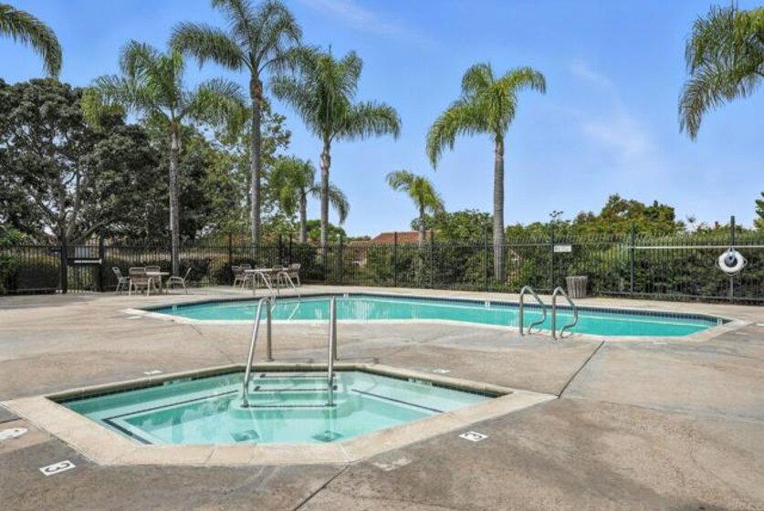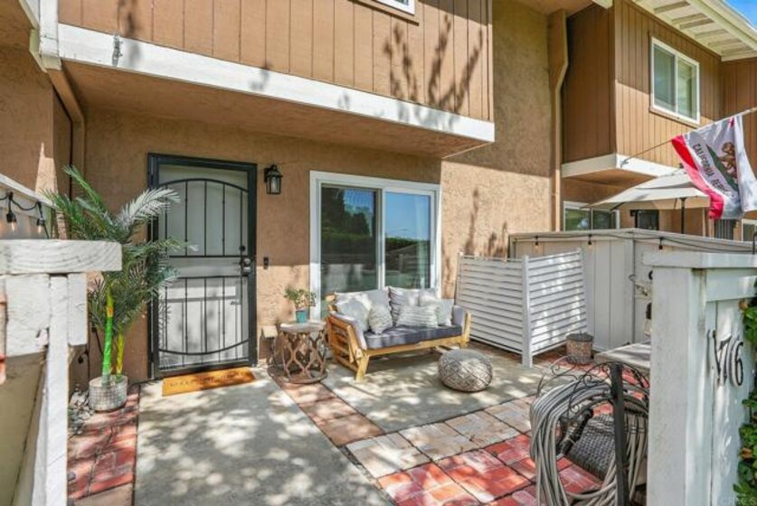 VA Financing Approved...Rarely available model townhome perched at the top of Quail Ridge offering 2 ensuite bedrooms, 2.5 baths, and 1,210 sq ft of comfortable, low-maintenance living. Entry-level features include a spacious living area with LVP flooring, a private patio, and a granite-appointed kitchen with travertine floors, stainless steel appliances, and a newer dishwasher. No steps to the front door, dual-pane windows, air conditioning, and an oversized one-car garage with storage and workbench. Enjoy a peaceful greenbelt entry, unlimited guest parking, and easy access to the community pool, spa, and clubhouse. Ideally located just 6 miles from the beach, minutes to shopping, dining, and major routes. VA approved and move-in ready!