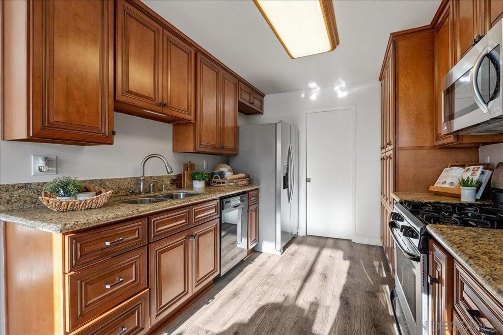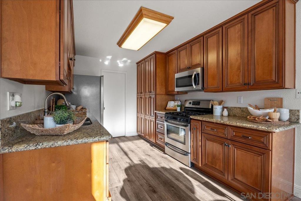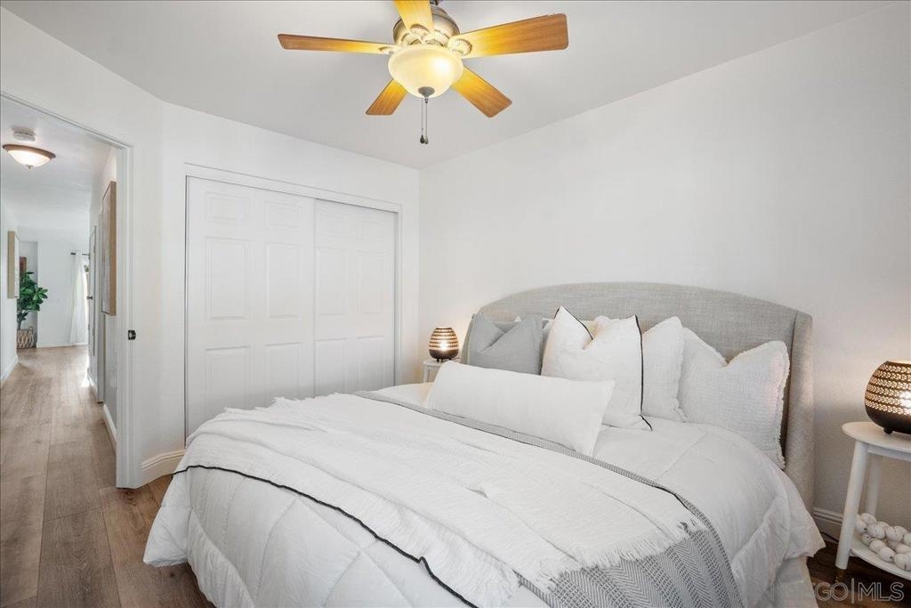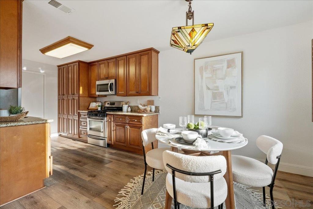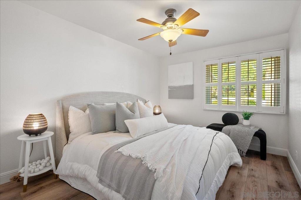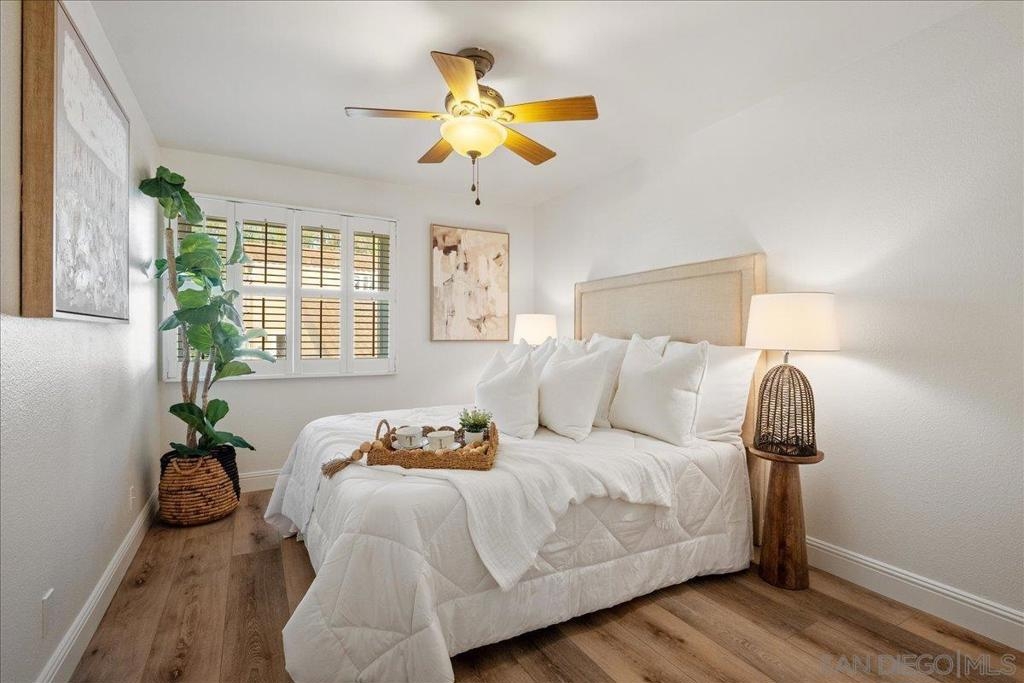 VA approved and move-in ready, this bright and breezy 2 bed, 2 bath upstairs condo offers peaceful west-facing views overlooking the greenbelt, with no neighbors above or behind. The open and airy floor plan features wide-plank luxury vinyl flooring throughout, fresh paint, and an updated kitchen that flows seamlessly into the living and dining areas, filled with natural light. The home includes a private 1-car garage and is located in a well-maintained community with lush landscaping, walking paths, and a sparkling pool and spa. HOA dues cover water, sewer, trash, exterior maintenance, and access to all community amenities. Ideally situated just 6 miles from the beach with easy access to Hwy 76, I-5, and 78, this location is perfect for commuters, first-time buyers, or anyone looking to enjoy the best of Oceanside living. Zoned for highly rated schools including Ivey Ranch Elementary, Martin Luther King Jr. Middle School, and El Camino High School.