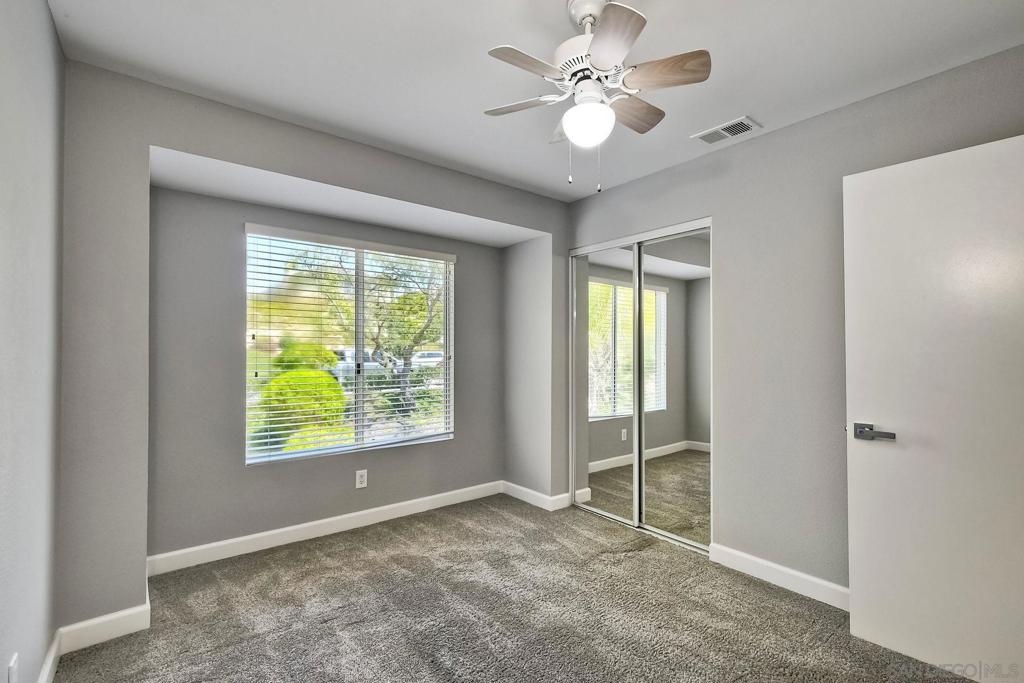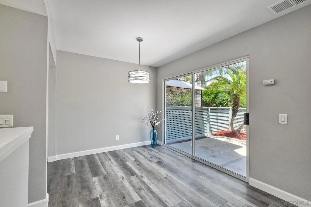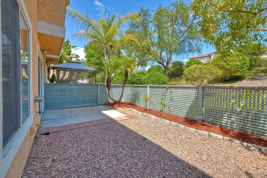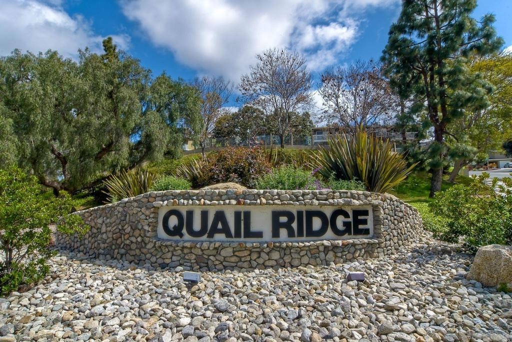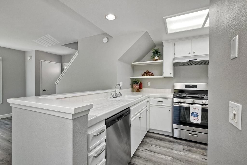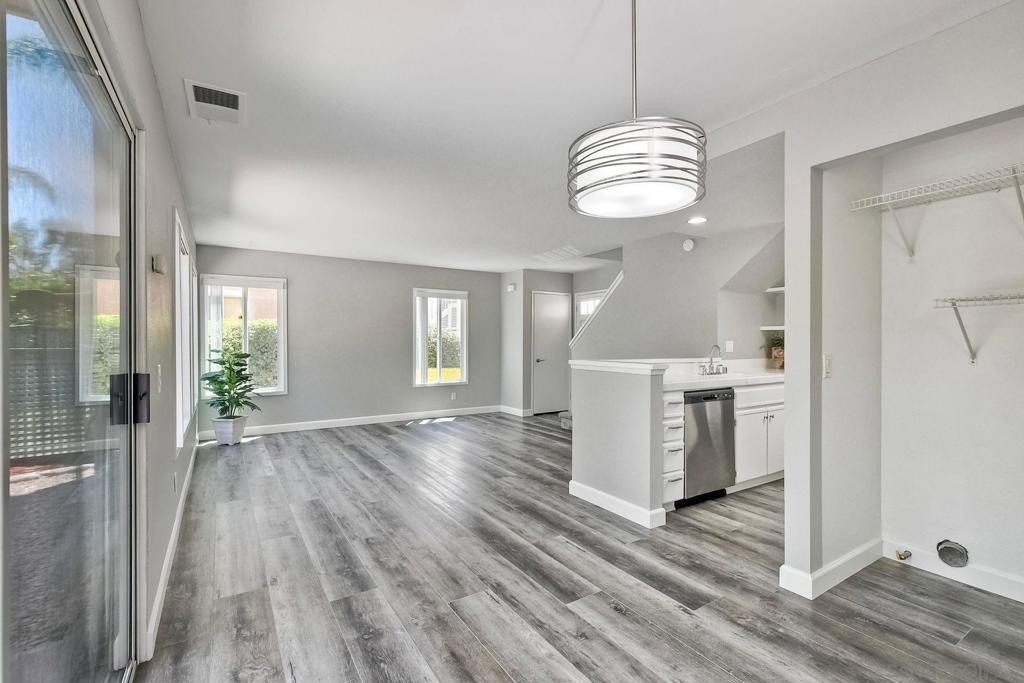 Lovely south facing end unit in the Quail Ridge community of Oceanside! This desirable two story condo has no one above or below and is quiet with no garage directly below the unit. Walking through the entry you appreciate the inviting living room with it’s rich LVP flooring and the light flooding in from four large windows. The kitchen is open to the living room and combines ample tile counterspace, white cabinets and open shelving to create a beautiful and functional workspace. The dining room has a contemporary light fixture and sliding glass door to the back patio, facilitating indoor/outdoor living. On the second level, the primary bedroom has a vaulted ceiling, cooling fan, 4 sizeable windows, cozy carpet and two mirrored closets. The primary bath has a vanity with storage and generous counterspace while windows above a shower/tub combination bring in the breeze and natural light. The second bedroom with it’s large window and mirrored closet is perfect for whatever the homeowner desires: office, workout room or second bedroom. Nearby, the hall bathroom is well appointed and offers another shower/tub combination. The back yard is fenced and has a patio roomy enough for a dining table or conversation area. The surrounding yard is low maintenance with a rock border, gravel and 3 trees. The finished one car garage has an epoxy floor and room for storage or a workbench. Wonderful location 5 miles from the beach, easy freeway access (78, 76 and Interstate 5) and near multiple parks.
