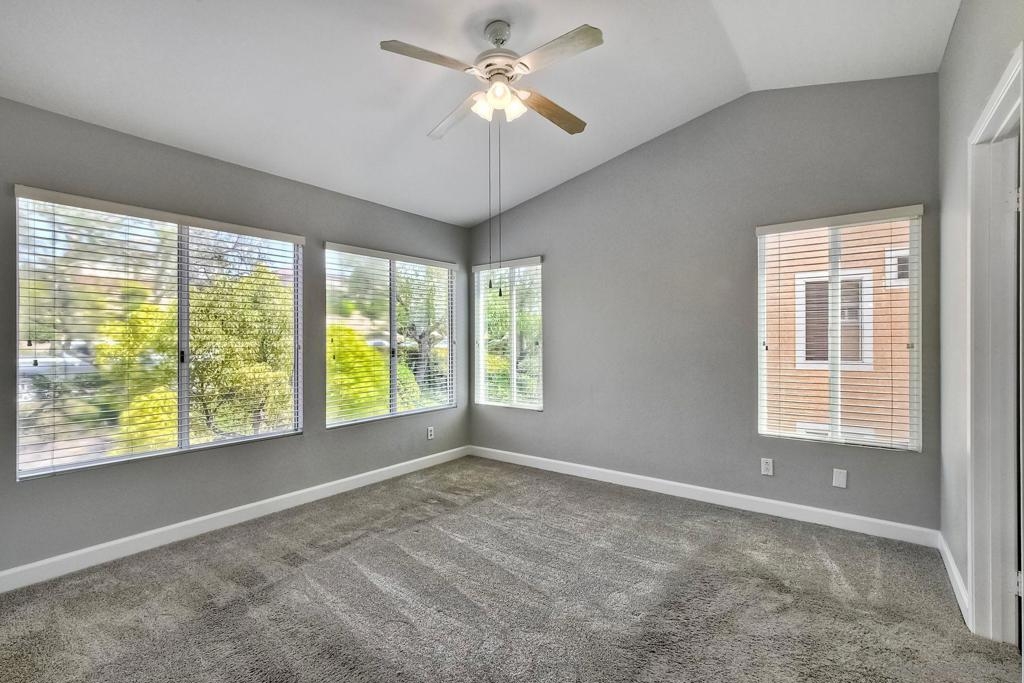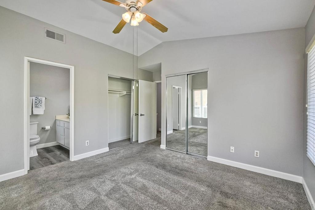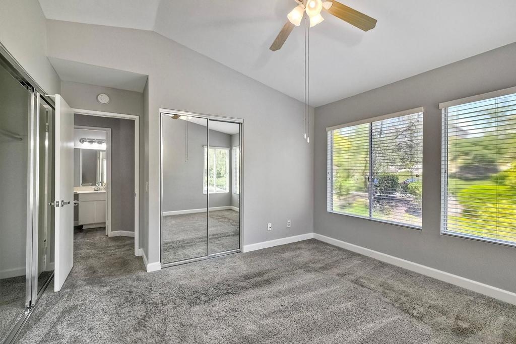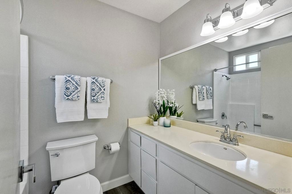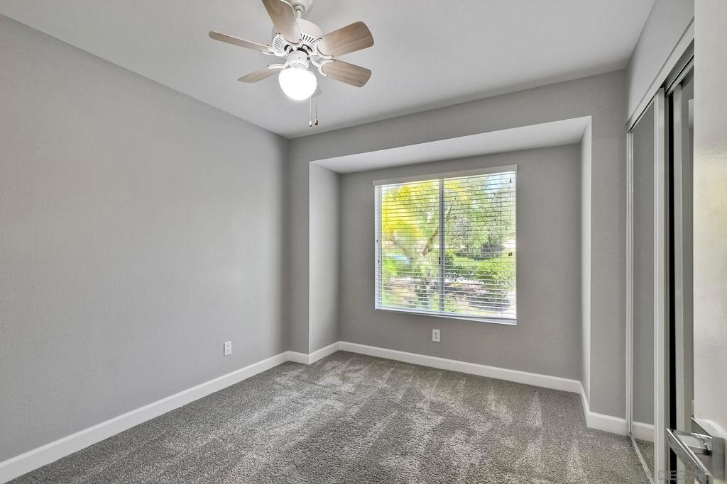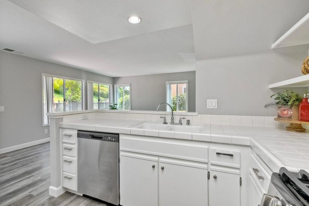 Lovely south facing end unit in the Quail Ridge community of Oceanside! This desirable two story condo has no one above or below and is quiet with no garage directly below the unit. Walking through the entry you appreciate the inviting living room with it’s rich LVP flooring and the light flooding in from four large windows. The kitchen is open to the living room and combines ample tile counterspace, white cabinets and open shelving to create a beautiful and functional workspace. The dining room has a contemporary light fixture and sliding glass door to the back patio, facilitating indoor/outdoor living. On the second level, the primary bedroom has a vaulted ceiling, cooling fan, 4 sizeable windows, cozy carpet and two mirrored closets. The primary bath has a vanity with storage and generous counterspace while windows above a shower/tub combination bring in the breeze and natural light. The second bedroom with it’s large window and mirrored closet is perfect for whatever the homeowner desires: office, workout room or second bedroom. Nearby, the hall bathroom is well appointed and offers another shower/tub combination. The back yard is fenced and has a patio roomy enough for a dining table or conversation area. The surrounding yard is low maintenance with a rock border, gravel and 3 trees. The finished one car garage has an epoxy floor and room for storage or a workbench. Wonderful location 5 miles from the beach, easy freeway access (78, 76 and Interstate 5) and near multiple parks.