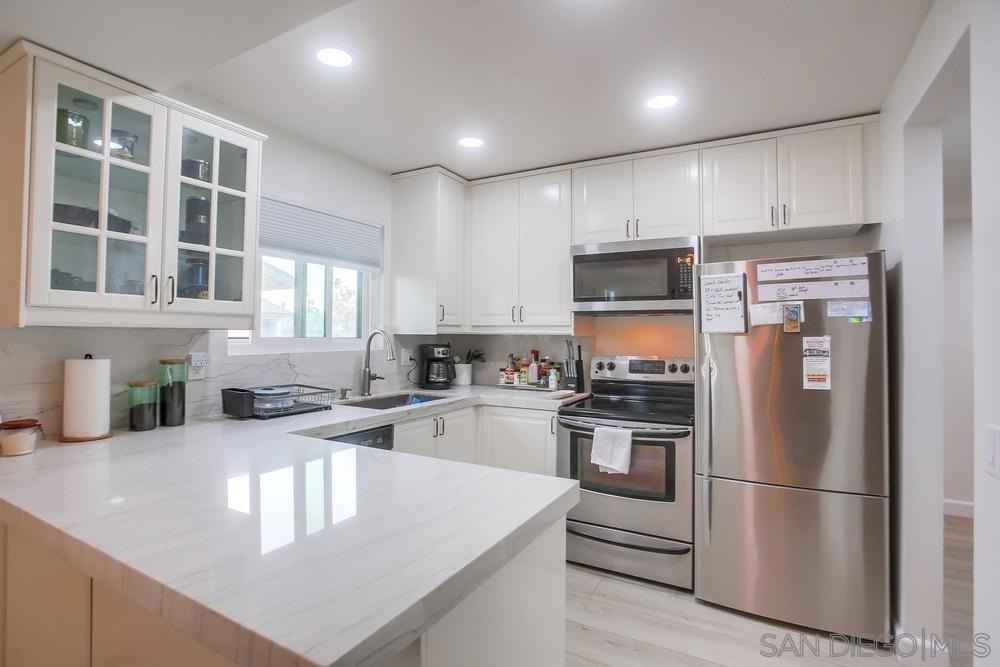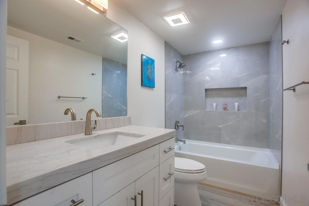 This beautiful Top story Oceanside condo was thoroughly remodeled in 2023. Each bedroom has ocean views, as does the living room and deck. The kitchen has been updated with cabinets and new quartzite (natural stone) countertops. The master bathroom features a fully-tiled custom shower with glass door, double vanity, and quartzite countertops. Custom-tiled tub shower, new vanity, and new lighting in the hallway bathroom. New alabaster paint and solid surface, professionally-leveled vinyl flooring throughout. New lighting throughout. The unobstructed area behind the condo allows for an ocean breeze that moves through the unit. One of the largest home builders in the country, is building 170+ townhomes in the immediate area, which should benefit property values when they go on sale. Two-car garage and Ocean Views are a rare find in a home at this price point. An excellent value!