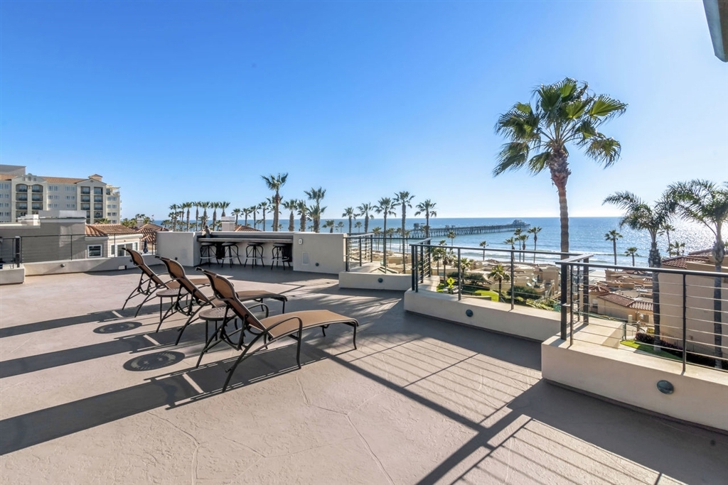 ABSOLUTELY SPECTACULAR--the ULTIMATE in LUXURY BEACH LiVING! Top floor Kingston plan in the prestigious Montego condominiums this home is steps from the beach with gorgeous ocean and pier views from a "Wall of windows". High-end everything-- from beautiful German Oak floors to Viking appliances. Smarthome electrical-- Enjoy sunsets on your own private balcony or entertain on the huge roof top deck with Big Screen, bar, barbecues. 3 parking spaces & big private secure storage in gated garage. This is a truly special property. You'll feel it the minute you walk in and press a button to turn on all lights (or just some) and open the electric window shades. Everything is perfect in this state of the art residence. Walk to great restaurants and shopping. You will feel like you are on vacation all the time in this lovely property. Just bring your sunscreen, beach chairs are included!. Neighborhoods: Oceanside Beach/Pier Complex Features: , Equipment: Dryer,Garage Door Opener, Washer Other Fees: 0 Sewer: Sewer Connected, Public Sewer Topography: LL