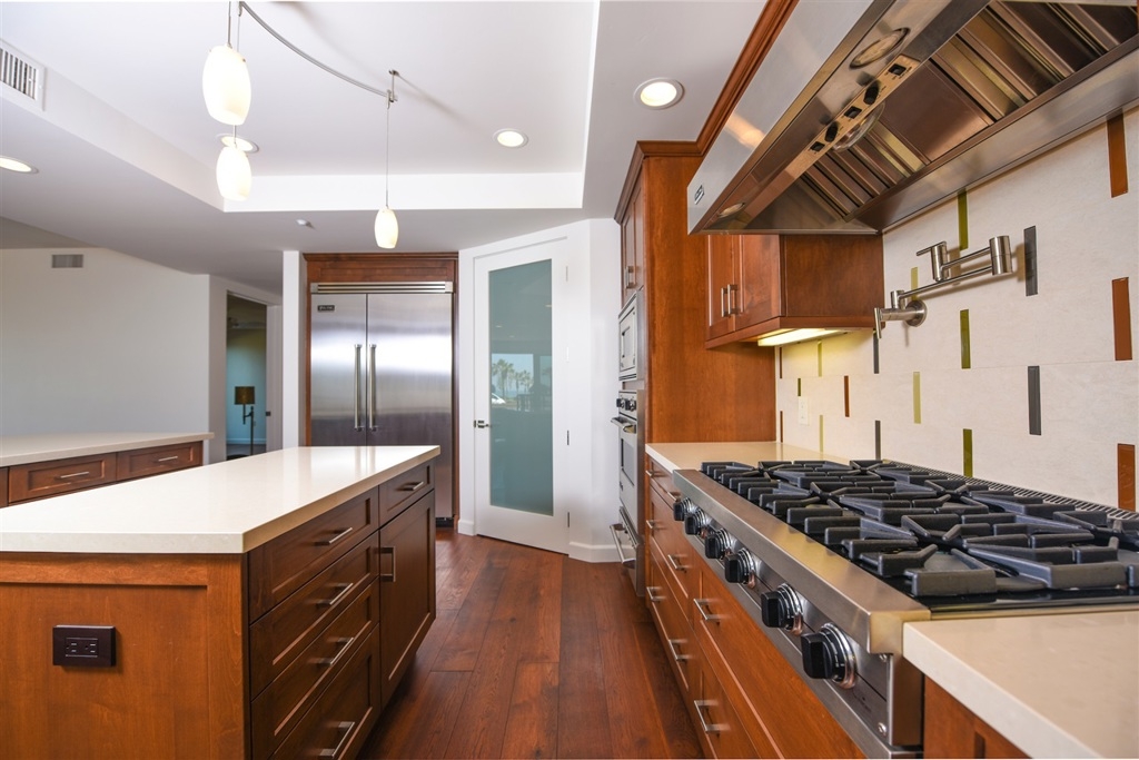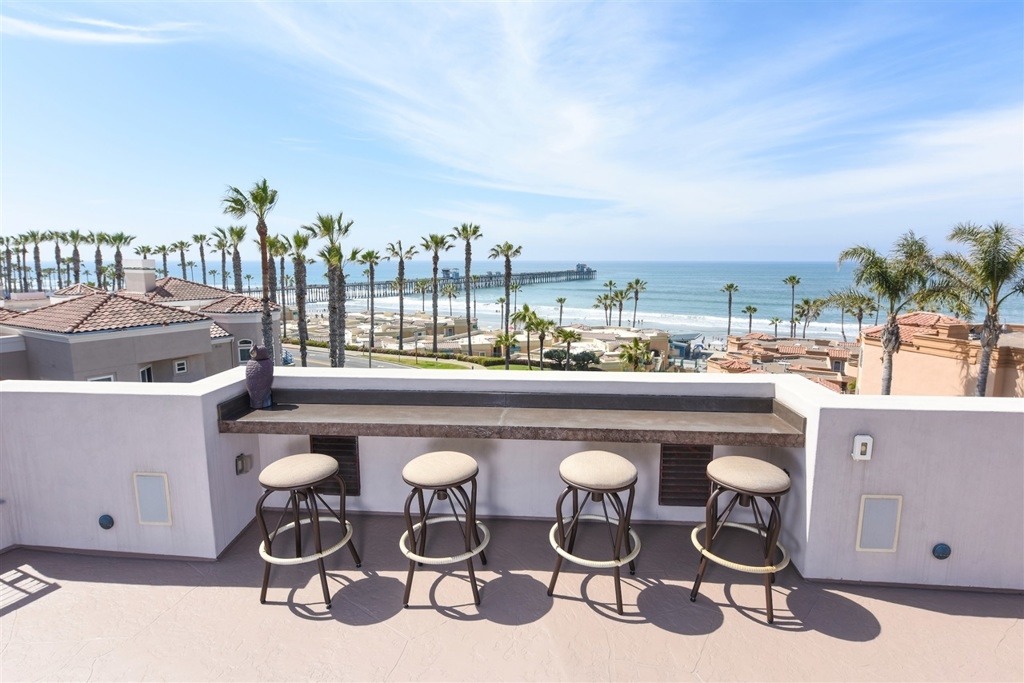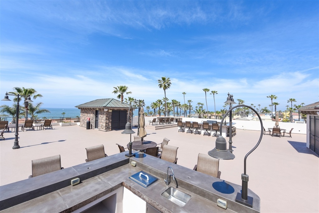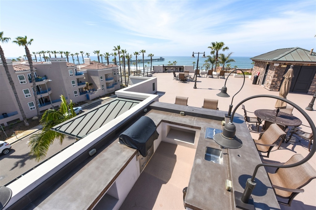 FIRST CLASS LIVING WITH UNOBSTRUCTED OCEAN VIEWS. Open concept with views from living room, kitchen and master bedroom. Appointed with rich wood floors, Viking appliances, granite counters, Brookhaven cabinetry, Smart Home system, automatic window shades, central AC and heating and more. This ground floor unit has dual entrances. One entrance from interior of complex and one entrance to the street for quick access to the beach, cafes, coffee shops and restaurants. Top 10 Features: #1) Gorgeous Wide Plank Wood Flooring, #2) Extremely Large Chefs Kitchen with Top of the Line Viking Appliances including 6 Burner Gas Cooktop, #3) Smart Home AV System with Lutron Lighting and Server/Component Room, #4) Quartz/Stone Countertops in Kitchen and Bathrooms, #5) 3 Assigned Garaged Parking Spots (1 Spot Is A Completely Private Garage), #6) Central Heating and Air Conditioning, #7) Giant Private Storage Room (Approx. 10 by 20 Feet!!!) #8) AMAZING AMAZING Community Roof Top Deck with BBQ Stations, Outdoor TV, Surround Sound, #9) Community Exercise Room, #10) OCEAN VIEWS!!!! This home has it all and is just a short walk to the beach as well as all the wonderful restaurants, cafes, breweries and coffee shops that Downtown Oceanside has to offer!. Neighborhoods: Oceanside Equipment: Fire Sprinklers Other Fees: 0 Sewer: Sewer Connected Topography: LL