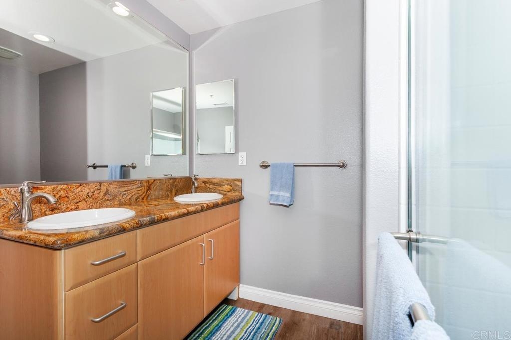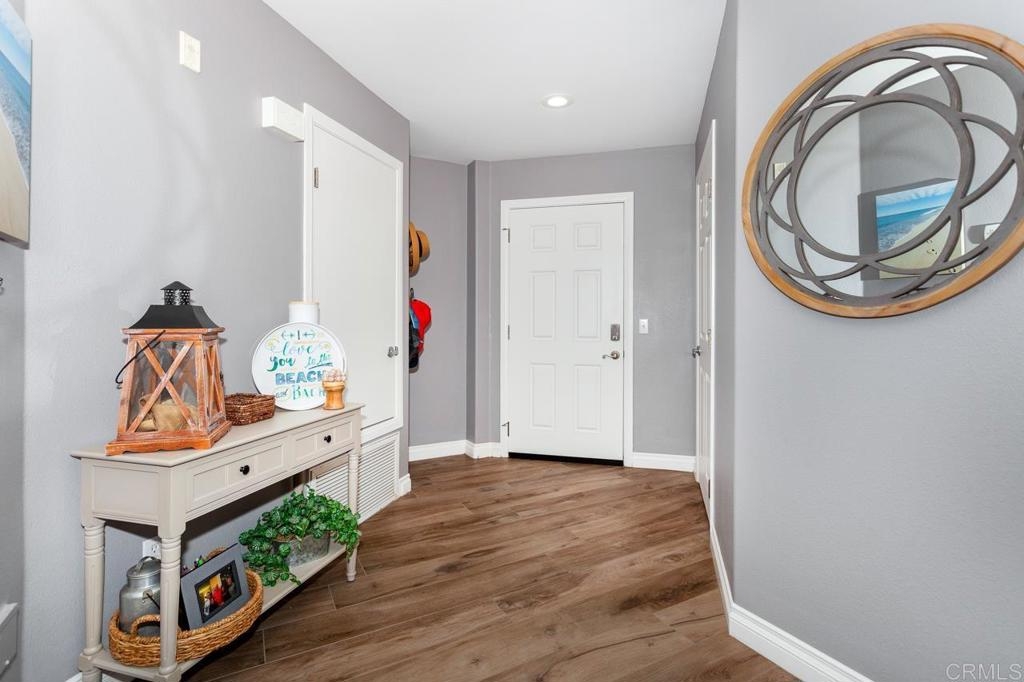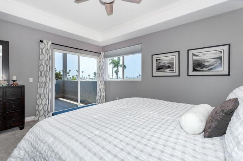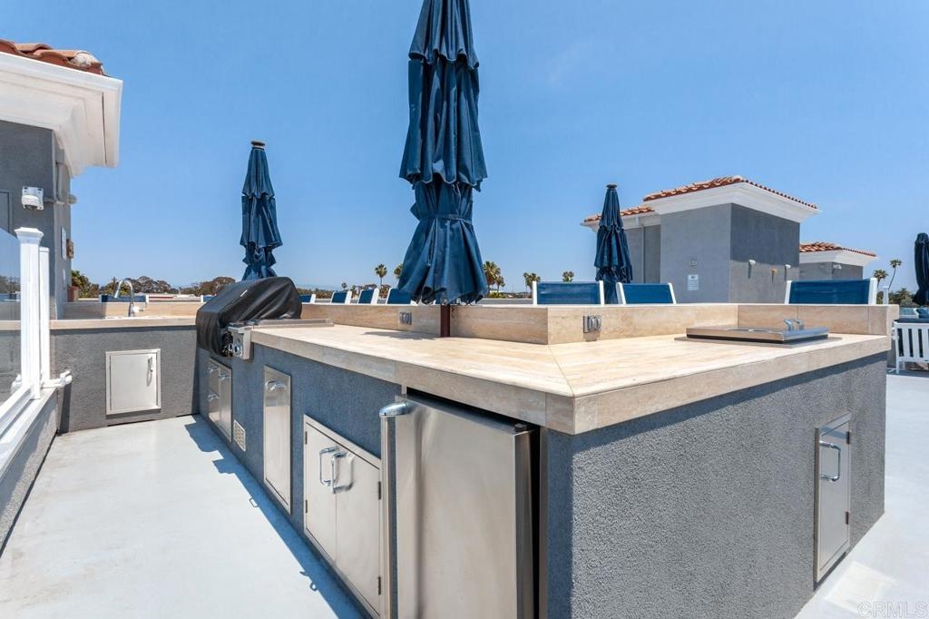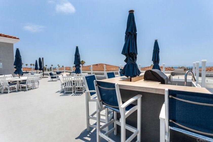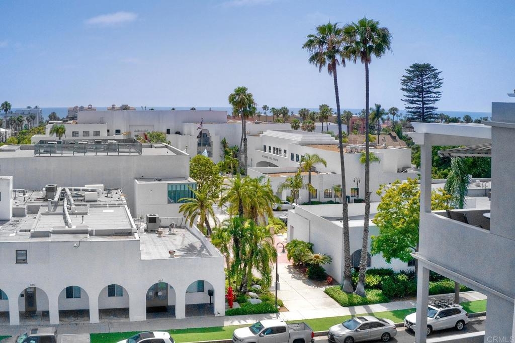 West of I-5! Corner Unit with ocean views! Located in the heart of the cultural district of Oceanside and just a few blocks to the beach & Oceanside Harbor! This property is a single level 3/2 with west facing balcony. This unique building includes a three car garage, PLUS first floor office/den/hobby or storage room, gym and recreation room. The roof top deck (just remodeled with gorgeous barbeque, fire pit & more) has 180 degree ocean view. Walk score is 95 or in other words a walkers paradise! Walk to Oceanside's beautiful beaches, fishing pier, new hotels, restaurants, houses of worship, grocery stores, train station, and more! Nothing compares to the bells and whistles this building has to offer!