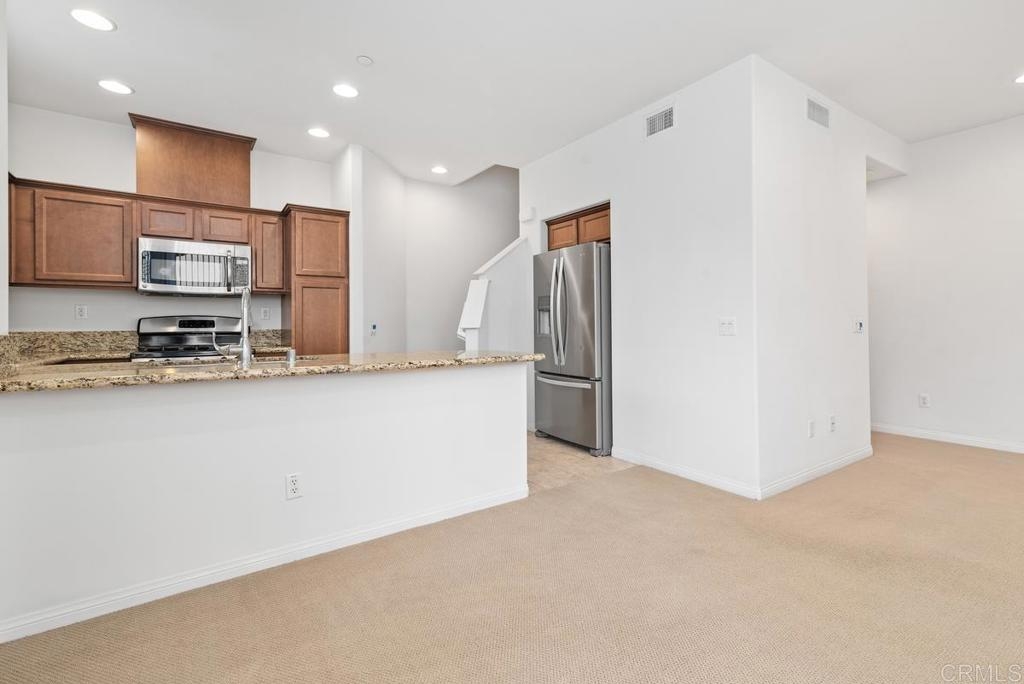 Nestled in a charming gated community just about 7 miles from the beach, this townhome is a harmonious blend of comfort and functionality. The heart of this home, the kitchen, is adorned with mocha cabinets, granite countertops, and stainless-steel appliances. The living room and dining area is bathed in natural light, featuring recessed lighting that sets a cozy ambiance, perfect for relaxation or entertaining guests. The spacious master suite is a sanctuary, offering a walk-in closet and dual sinks in the master bathroom. Full-sized front-loading washer and dryer, central A/C, and ceiling fans in the bedrooms ensure the comfortable lifestyle. 2-car garage provides the space for parking and storage, adding practical convenience to your daily living. Dive into the community pool, unwind in the hot tub, or take a leisurely stroll in the nearby park. Walk to nearby stores, restaurants, schools, and parks. Experience the perfect blend of privacy, convenience, and community in this charming townhome. No Mello-Roos adds to the appeal, making this an exceptional opportunity. Schedule a viewing today and make this your new home sweet home!