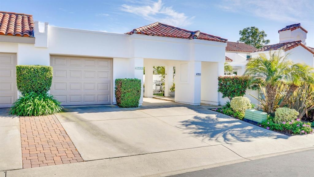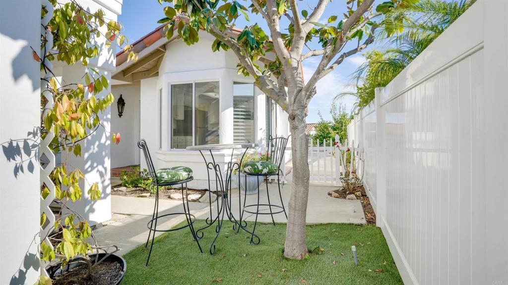 Discover serene living with this charming attached home nestled in the heart of the highly sought-after 55+ Ocean Hills Country Club community. This inviting residence is specially crafted for those who appreciate a blend of comfort, community, and the convenience of coastal living. 1,106 sqft of meticulously designed living space, this home epitomizes "light and bright" with an abundance of natural light flooding every corner, creating an ambiance of warmth and welcoming. Upon entering, you're greeted by an elegant living area, an ideal backdrop for relaxing afternoons. The charming kitchen features bay windows that not only bathe the area in gentle sunlight but also frame the perfect nook for your morning coffee or afternoon tea. Upgrades include newer luxury vinyl plank flooring, newer baseboards, newer appliances and granite counter tops. This thoughtfully designed home boasts two bedrooms and two full bathrooms, ensuring ample space for comfort and privacy. The interior's charm is matched by the delight of its outdoor space. Featuring a small backyard with white vinyl fencing, adorned with fruit trees, including a lemon and lime tree, the space offers a tranquil retreat and an open canvas for your green-thumb aspirations. The practicalities have not been overlooked, with a one-car garage complemented by additional driveway space for two cars, ensuring ample parking for both residents and guests. The allure of this home extends beyond its physical boundaries, thanks to the vibrant Ocean Hills Country Club community. Security and peace of mind are paramount, provided by gated access and dedicated security personnel. The array of amenities available is nothing short of spectacular, designed to cater to a wide range of interests and lifestyles. From the 27,000 square foot clubhouse to weight room, pickleball courts, tennis courts, bocce ball, 18 hole golf course for the active and sporty, to a community pool and spa for those leisurely, sun-soaked days. Not to forget the dog park, RV parking, library room and more! Embrace a life of comfort, community, and coastal bliss, this home has it ALL!