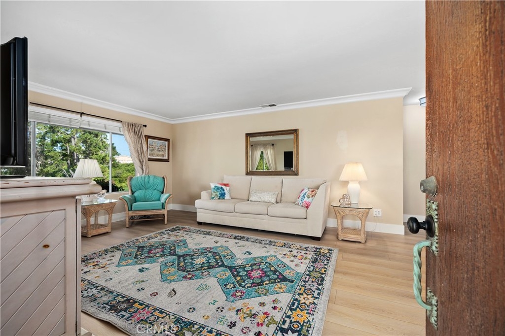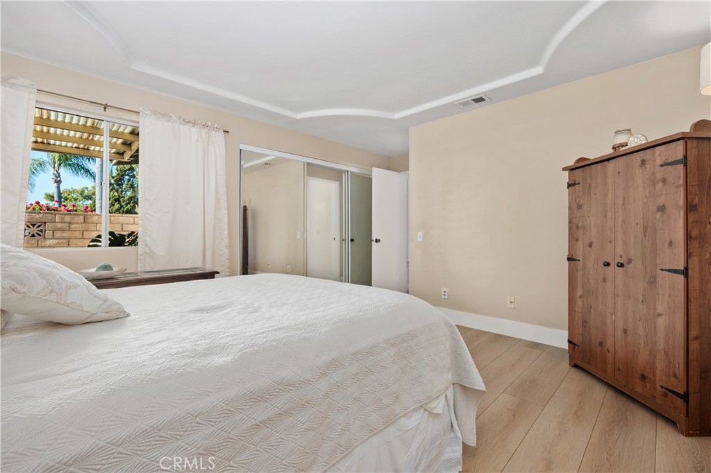 This beautifully maintained single-story, end-unit home is located in the highly desirable 55+ Oceana Mission II community. It sits on a large corner lot, with a spacious lawn and meticulously landscaped grounds. Enjoy stunning views of the scenic mountain ranges to the north and east, including Palomar Mountain, along with refreshing ocean breezes and an ideal coastal climate year-round. The interior features waterproof laminate flooring and updated baseboards (both less than two years old), plus ceramic tile in the bathroom floors. Crown molding adds an elegant touch to the living and dining areas as well as both bedrooms. Mirrored closet doors enhance the sense of space and light in each bedroom. The primary bathroom includes a large walk-in shower with a built-in bench, while the secondary bathroom offers a shower/tub combination and was fully remodeled within the past two years. The interior of the home has also been freshly painted within that time frame. An outdoor patio—currently used as additional living space—connects directly to the kitchen and offers flexibility, as it can be converted into a covered carport, if desired. The patio also provides direct access to the one-car, enclosed garage, which includes ample storage along with additional attic space. All appliances convey with the sale, including the refrigerator, washer, and dryer. The roof was replaced by the HOA in 2024. Guest parking is conveniently located nearby, and the community clubhouse is just a short walk away. Residents enjoy access to a pool, spa, and a variety of social activities throughout the year. The home is ideally situated less than one mile from shopping and dining near Highway 76, and it is just a short ten-minute drive to Interstate 5 and downtown Oceanside. The nearby harbor and beaches offer many recreational opportunities and exciting coastal entertainment.