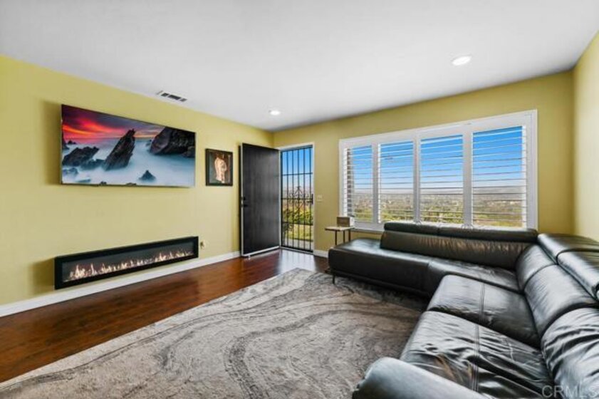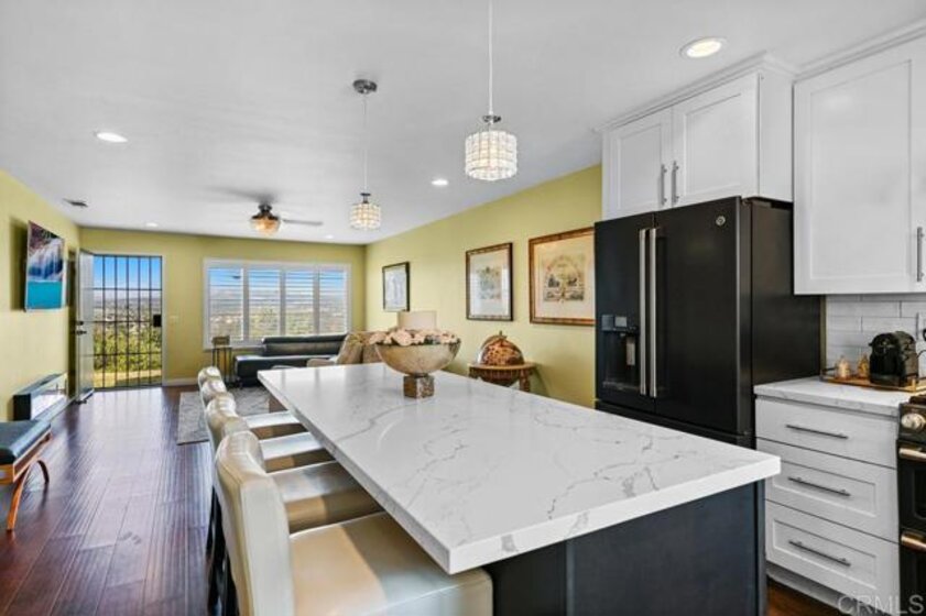 Gorgeous Hilltop property with sweeping PANORAMIC VIEWS! Welcome to Oceana Missions IV off Old Grove. Highly upgraded in 2019 this home boasts an open floor plan with white kitchen cabinetry, a 7'Quartz center island and quartz countertops, recessed lighting, top of the line appliances (6 burners gas stove), electric wall mount fireplace professionally installed, New Plantation Shutters, Dual Pane Windows, Ceiling fans in each room, Brand New energy efficient whole house Fan, dark flooring, professionally designed closets, new washer/drier all stay. Single attached garage, all patio furniture stay. HOA dues include water, sewer, trash + basic cable and insurance, outside maintenance and landscaping. Community pool was just remodeled and has a large Club House for gatherings. Turnkey home !!! Call listing agent today !